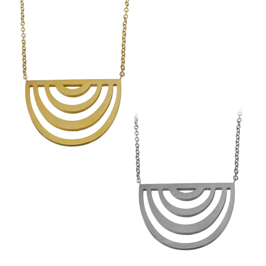 Ontdek de stralende pracht van Ketting Waves Zilver , een schitterend sieraad met een half ronde hanger voorzien van bogen. Deze verfijnde damesketting is vervaardigd van hoogwaardig roestvrij staal (RVS) en subtiel voorzien met een zilverkleurige plating, waardoor het niet alleen een tijdloze elegantie heeft, maar ook duurzaamheid biedt voor dagelijks gebruik.