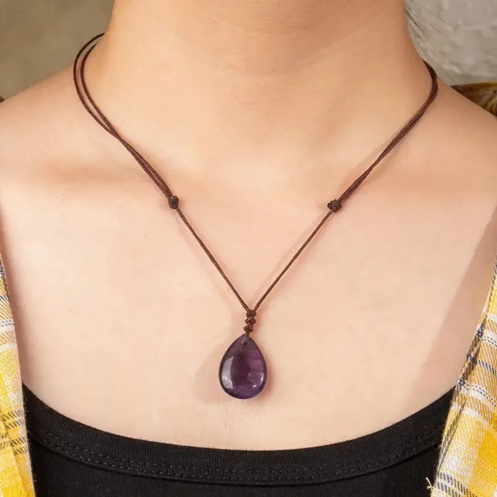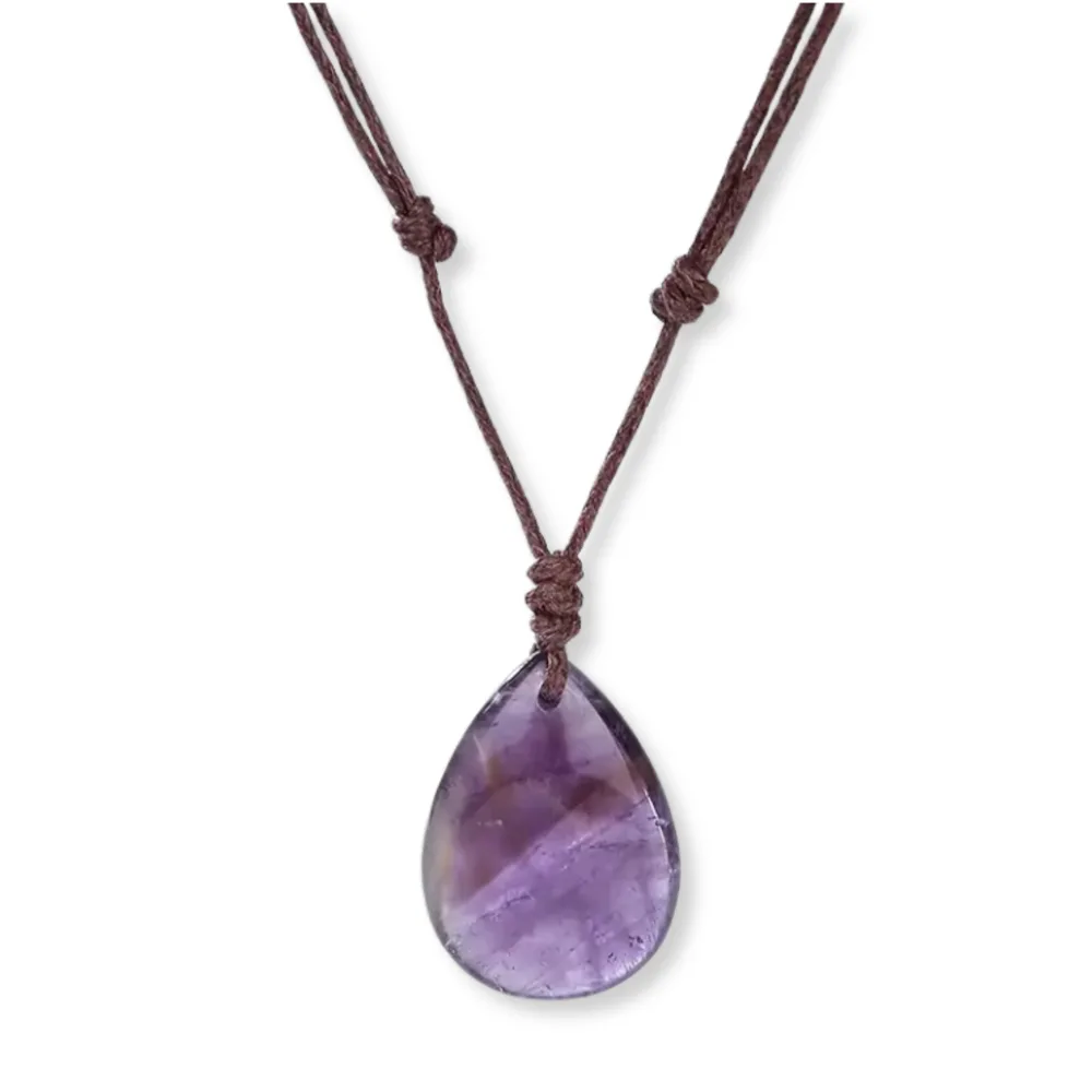 Deze ketting met paarse Amethist edelsteen is een prachtig cadeau voor jezelf of iemand anders. De edelsteen Amethist staat bekend om zijn kalmerende werking en het donkerbruine, verstelbare vegan waxcord maakt het mogelijk om de ketting te dragen op een lengte tussen de 40 en 80 cm, zodat hij altijd perfect valt omdat je hem kort en lang om de hals kunt dragen.