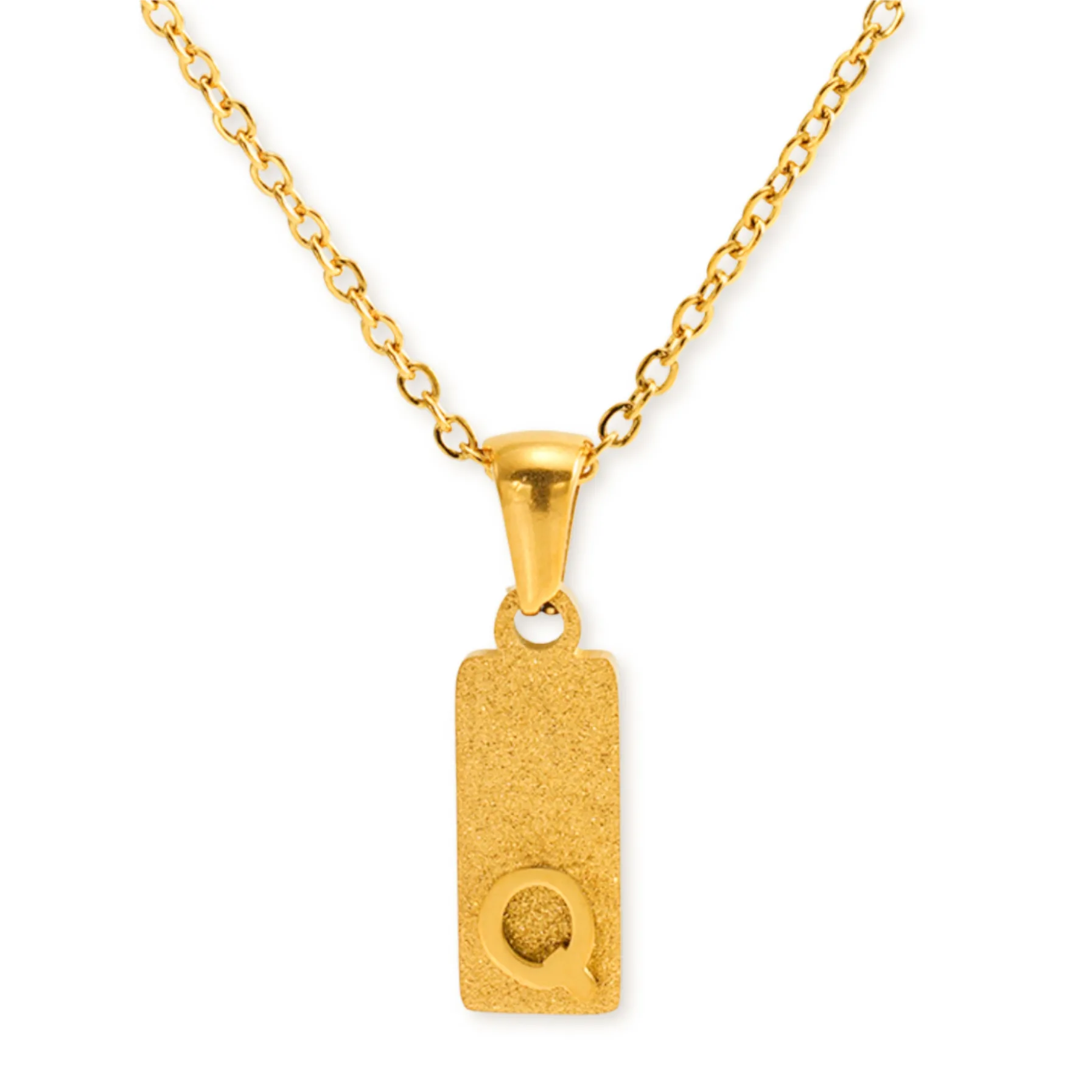 Voeg een persoonlijke touch toe aan je sieradencollectie met deze elegante ketting letter Q goud. De letter Q hanger is versierd met een subtiele glitterafwerking, waardoor het een sprankelend accent heeft dat je look tot leven brengt. Deze gold plated ketting is niet alleen stijlvol, maar ook van hoge kwaliteit dankzij het gebruik van stainless steel wat gedompeld is in een badje van goud, waardoor het lang meegaat zonder te verkleuren.