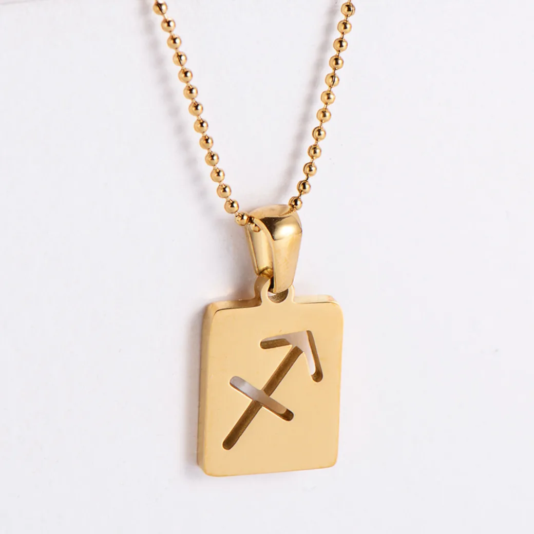 De rechthoekige hanger heeft een subtiele uitsnede van het sterrenbeeld Boogschutter, met verfijnde details die het vriendschappelijke en ondernemende karakter van dit sterrenbeeld benadrukken. De ballchain ketting voegt een moderne touch toe, terwijl de duurzame afwerking de ketting geschikt maakt voor jarenlang plezier.