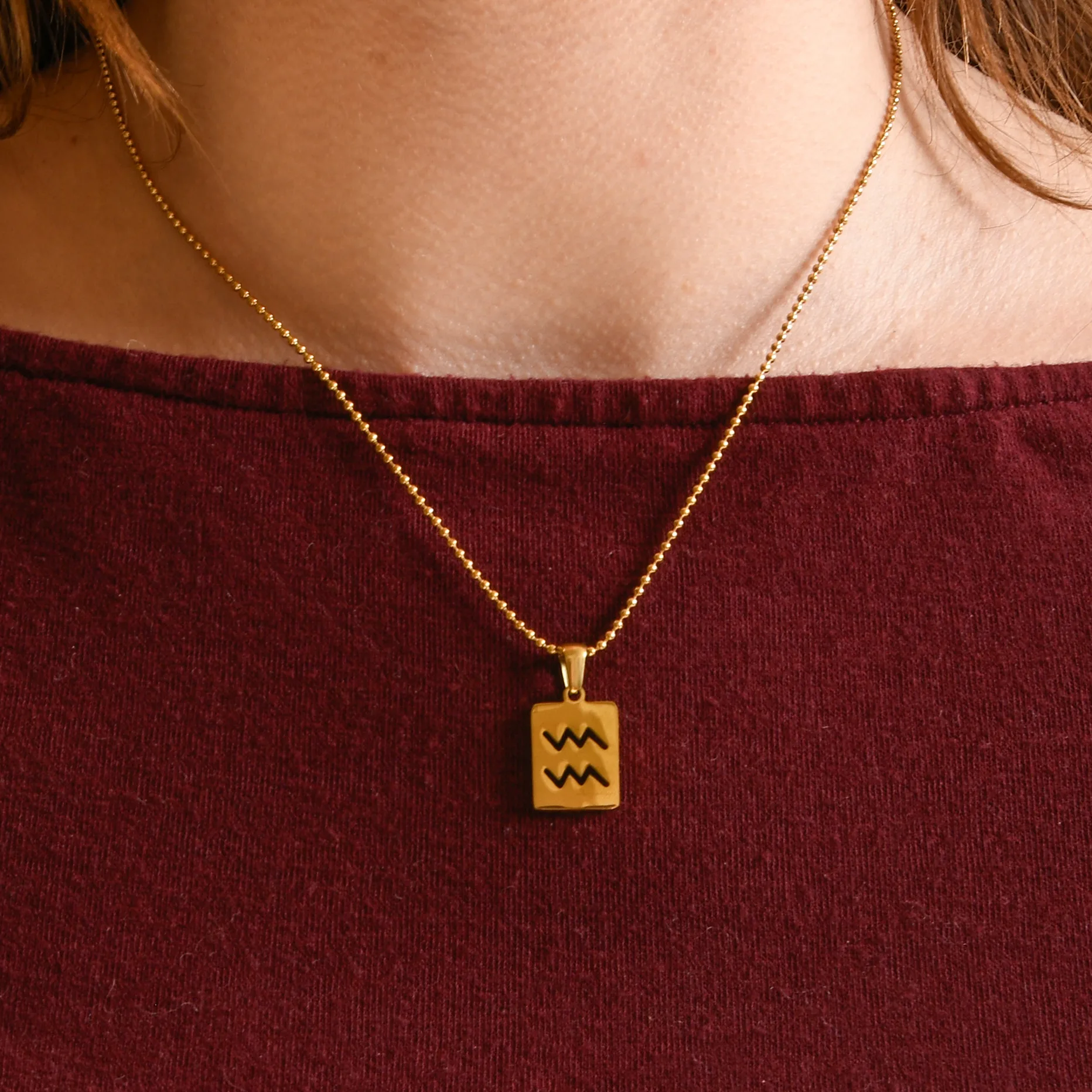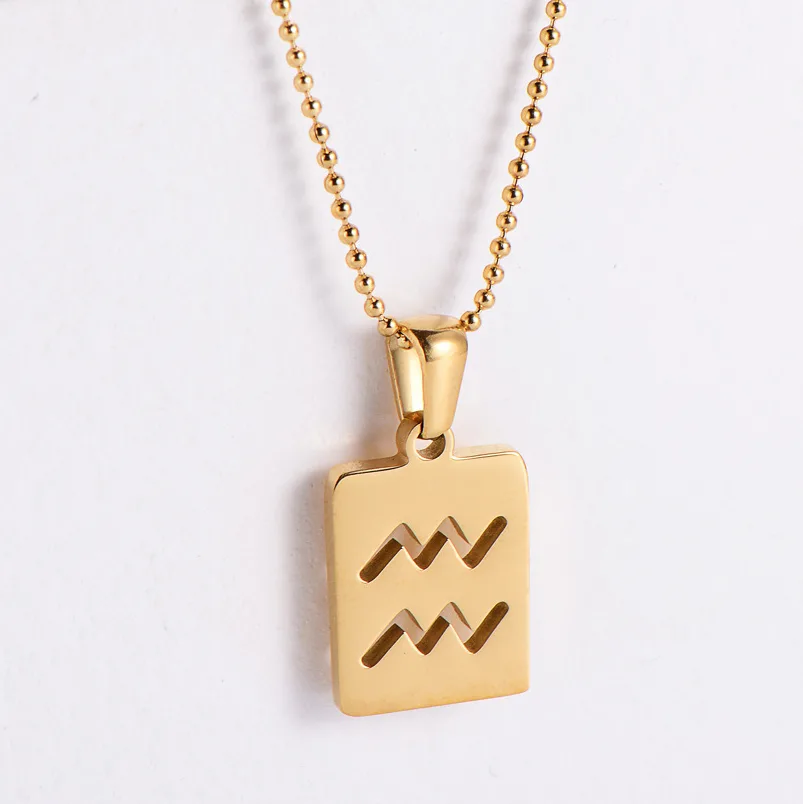 De rechthoekige hanger heeft een subtiele uitsnede van het sterrenbeeld Waterman, met verfijnde details die het empathische en autonome karakter van dit sterrenbeeld benadrukken. De ballchain ketting voegt een moderne touch toe, terwijl de duurzame afwerking de ketting geschikt maakt voor jarenlang plezier.