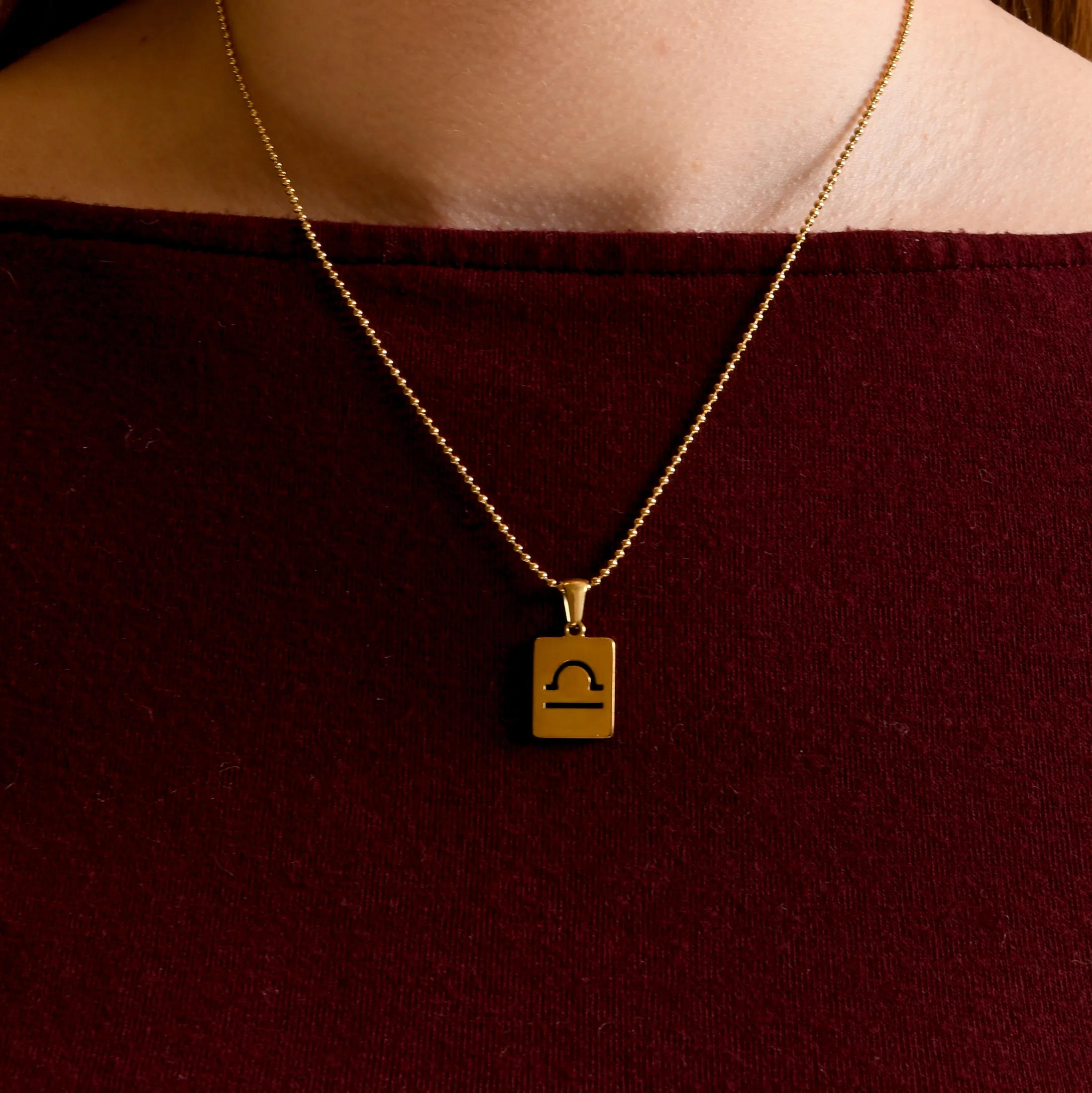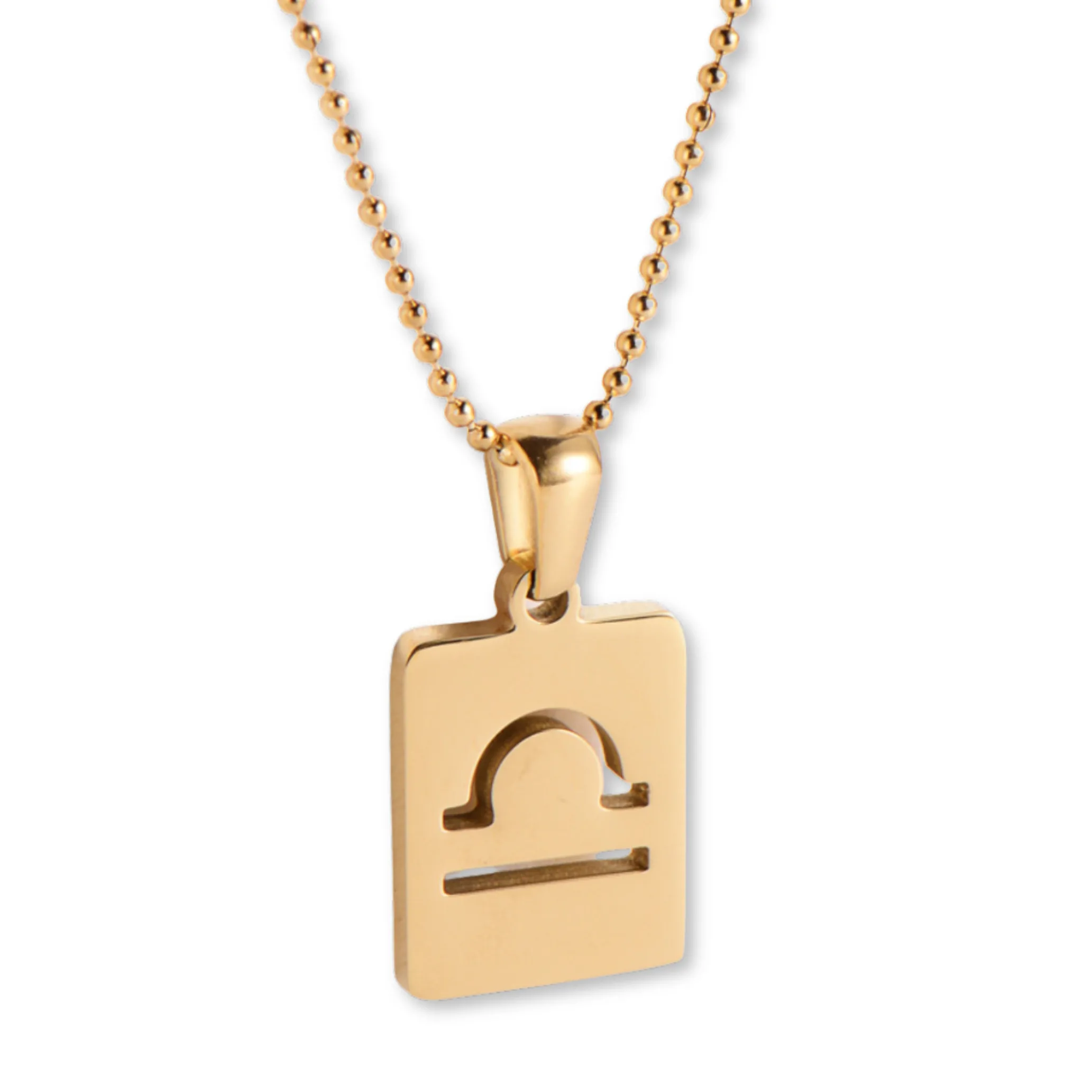 De rechthoekige hanger heeft een subtiele uitsnede van het sterrenbeeld Weegschaal, met verfijnde details die het opgewekte en vredelievende karakter van dit sterrenbeeld benadrukken. De ballchain ketting voegt een moderne touch toe, terwijl de duurzame afwerking de ketting geschikt maakt voor jarenlang plezier.