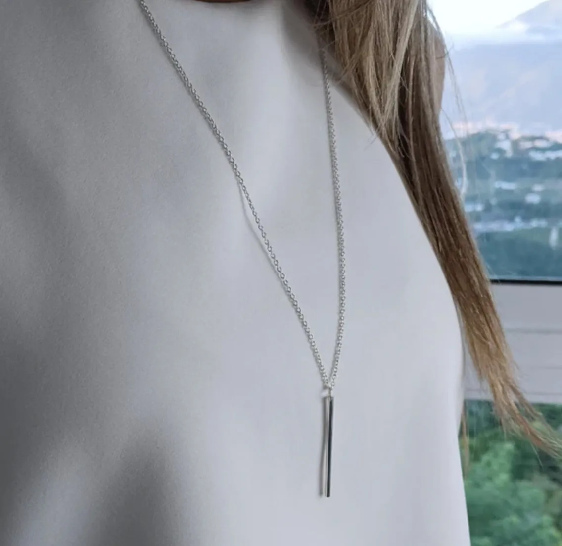 Maak je look compleet met deze prachtige damesketting Alysa Zilver met een smal staafje, de perfecte combinatie van stijl en elegantie. Deze lange ketting is gemaakt van hoogwaardig roestvrij staal (RVS) en is silver plated, waardoor hij een luxe uitstraling heeft die niet te onderscheiden is van echt zilver. Het nikkelvrije materiaal zorgt ervoor dat de ketting ook geschikt is voor mensen met een gevoelige huid, zodat je zonder zorgen kunt stralen.