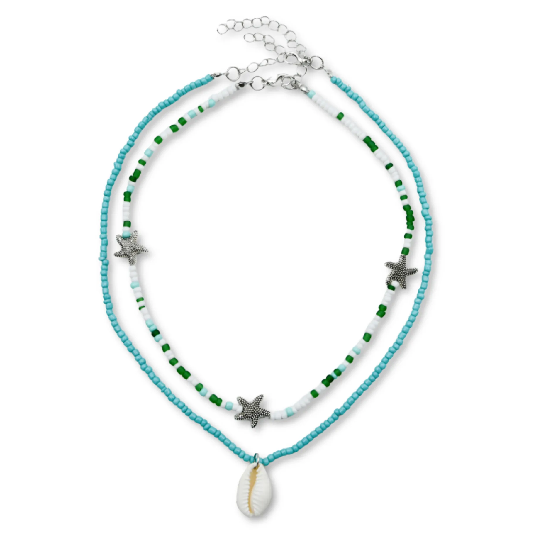Deze dubbele ketting geeft elke outfit een kleurrijke boost. Of je nu naar een festival gaat of gewoon van de zomer wilt genieten op het terras, deze ketting is de perfecte accessoire. De zilveren zeester voegt een speelse touch toe, terwijl de natuurlijke materialen zorgen voor een authentiek gevoel.