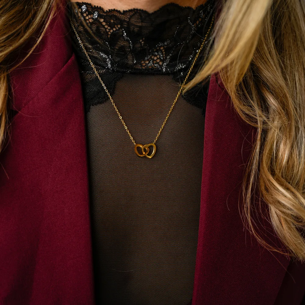 - Twee verbonden hartjes die liefde en verbondenheid symboliseren.