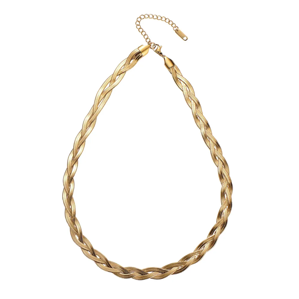 Ontdek de perfecte toevoeging aan jouw sieradencollectie met deze stijlvolle en trendy gold plated ketting voor dames. Deze prachtige gevlochten platte ketting is ontworpen om zowel elegantie als moderniteit uit te stralen, waardoor het een ideaal accessoire is voor elke gelegenheid.