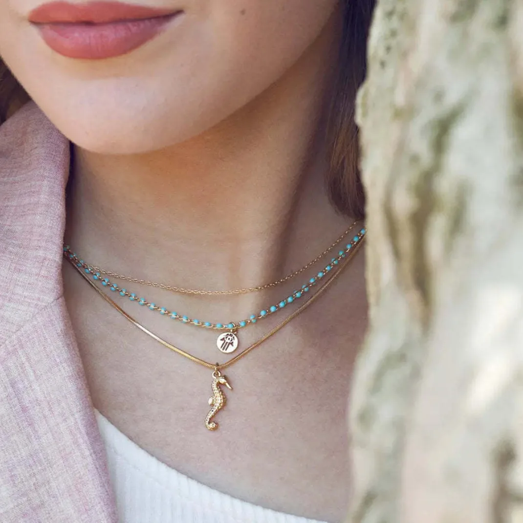 Voeg een vleugje elegantie toe aan je outfit met de Marama Ketting Zeepaardje Goud. Deze prachtige ketting is perfect voor vrouwen die houden van een subtiele maar stijlvolle uitstraling. Het ontwerp met een zeepaardje is niet alleen schattig, maar ook de perfecte aanvulling op je zomerse garderobe.