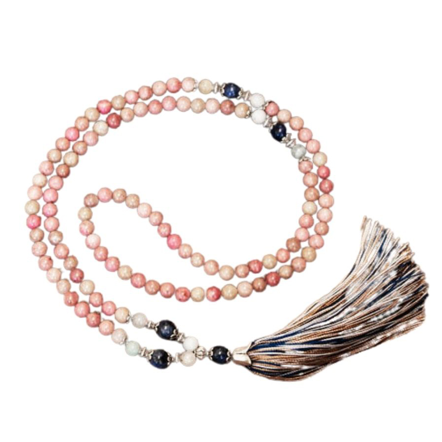 Deze prachtige vegan Mala ketting met edelstenen en een kwastje is een trendy sieraad, maar uiteraard ook zeer geschikt om te gebruiken tijdens het mediteren.