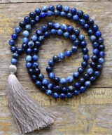 De ketting beschikt over 108 natuurlijke kralen van 6 mm waaronder de edelsteen Sodaliet.