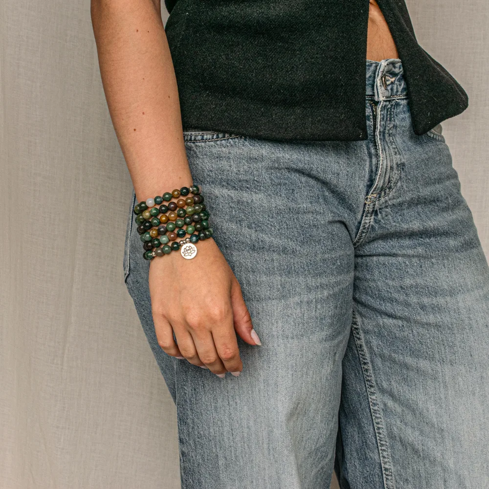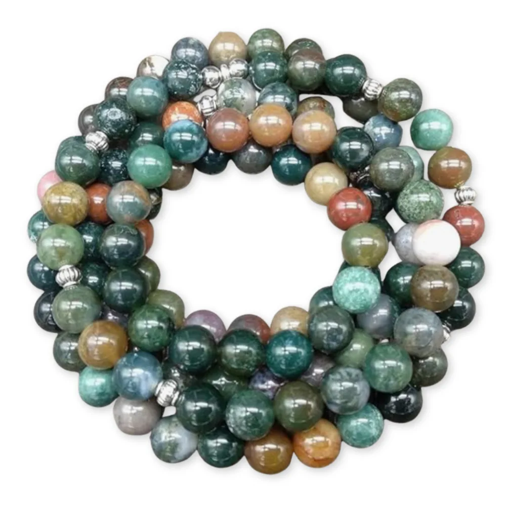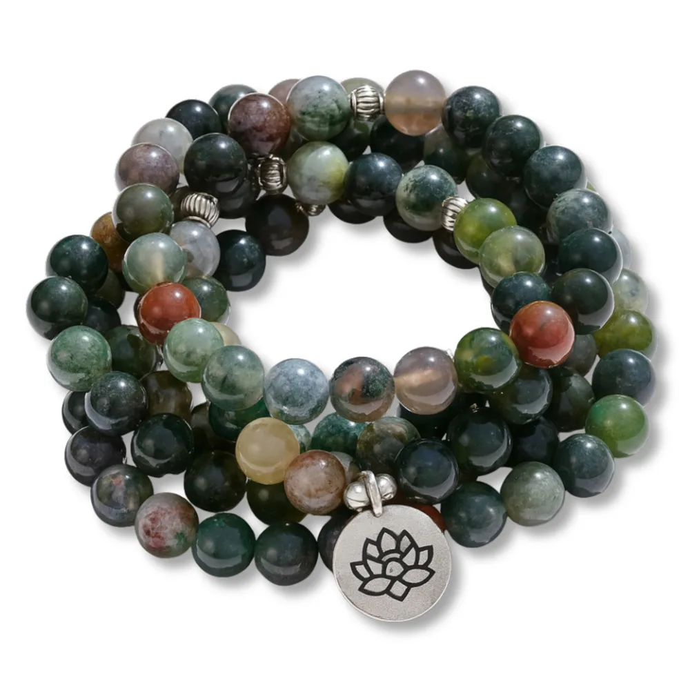 De Marama Mala Ketting Lotus Agaat is speciaal ontworpen voor dames die houden van spiritualiteit en stijl. Deze prachtige ketting is gemaakt van edelsteen agaat, wat zorgt voor een unieke combinatie van blauwe en bruine tinten. Met zijn elastische ontwerp kan deze ketting ook als wikkelarmband worden gedragen, waardoor je twee accessoires in één hebt.