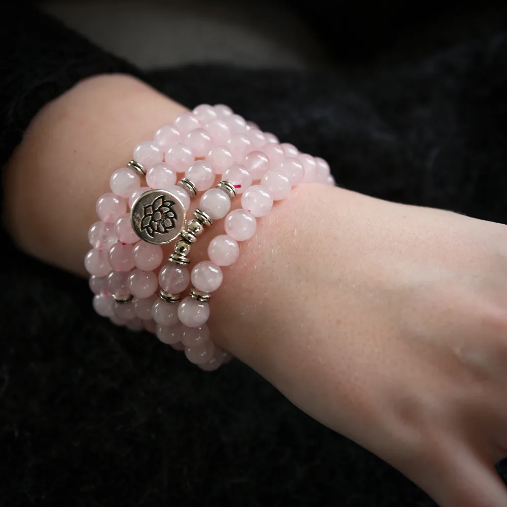 Deze mala ketting van rozenkwarts edelstenen is de ideale keuze als je op zoek bent naar een stijlvol cadeau voor jezelf of iemand anders. Met 108 kralen, zorgvuldig handgeknoopt, straalt deze ketting zowel elegantie als spiritualiteit uit. De zachte roze tint van de rozenkwarts staat bekend om haar liefdevolle en kalmerende energie, perfect voor dames die balans en harmonie zoeken.