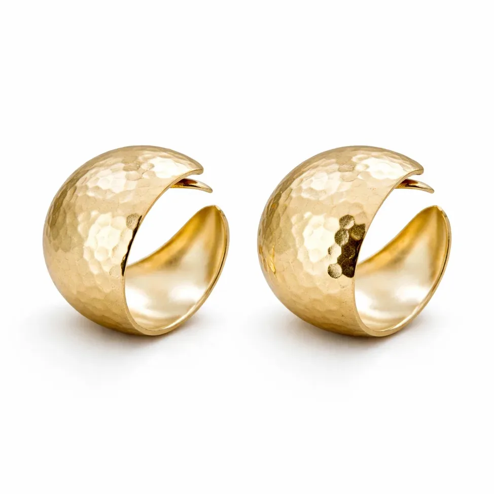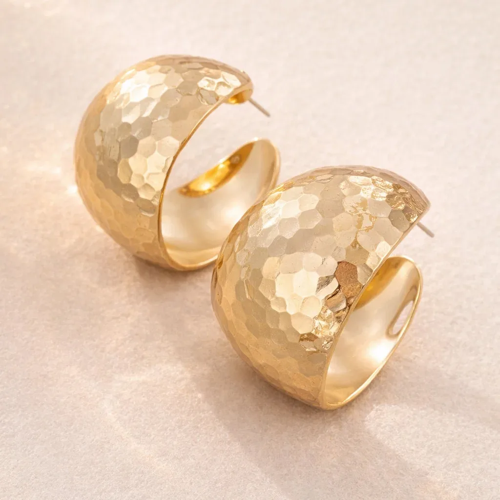 Deze 18K goudkleurige Elise Hammered Huggie Oorringen combineren een verfijnde uitstraling met een stoer, modern design. De gehamerde ronde vorm vangt het licht op subtiele wijze en geeft de oorbellen een luxe, handgemaakte look. Perfect voor wie houdt van een stijlvolle en opvallende look.