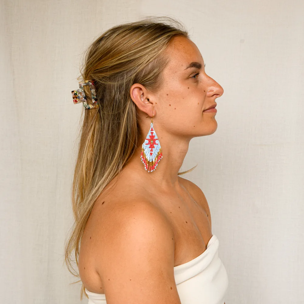 Ben je op zoek naar een opvallende toevoeging aan je sieradencollectie? De Marama Oorbellen Aztec Rood-Turquoise zijn precies wat je nodig hebt. Deze prachtige oorhangers zijn ontworpen voor dames die houden van een unieke en kleurrijke stijl. Met hun aztekenprint in turquoise en rood zijn ze een echte eyecatcher.