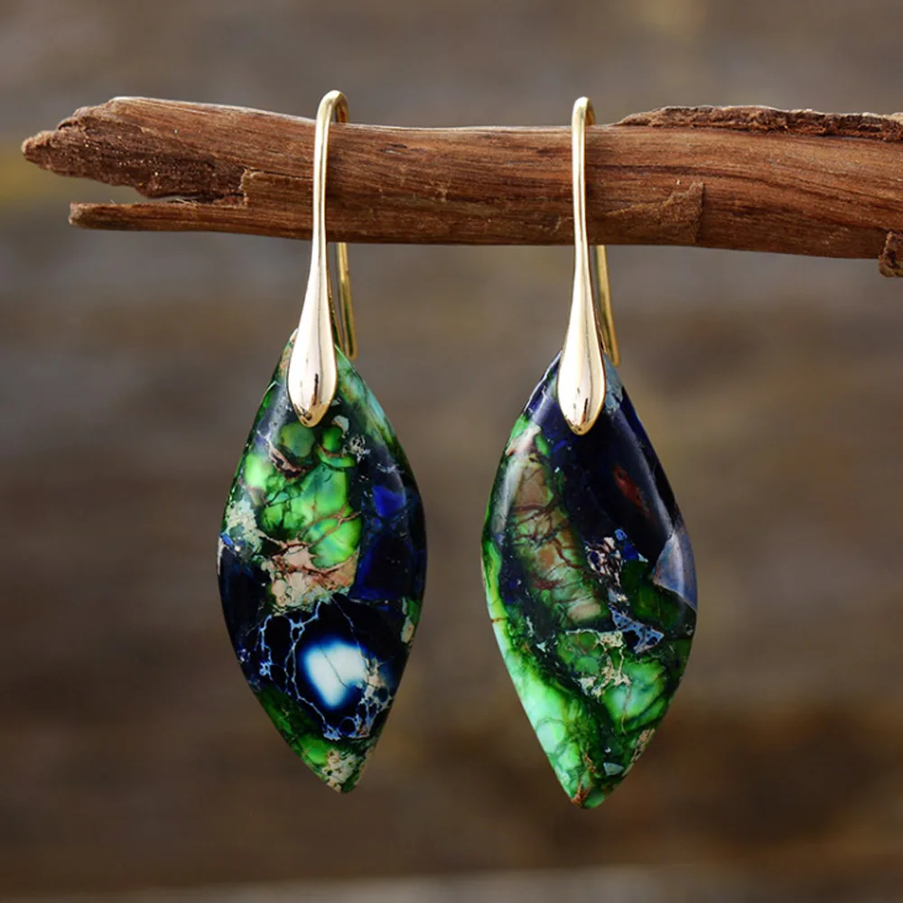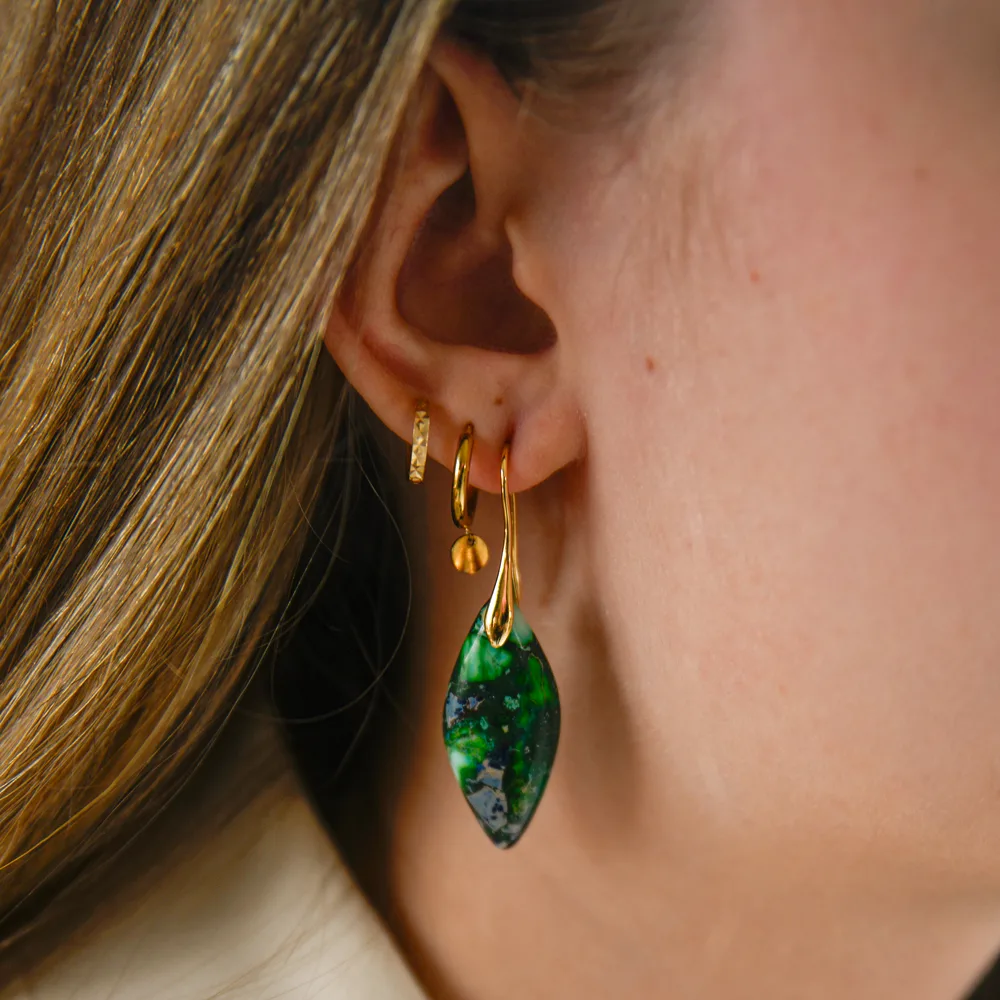 Voeg een vleugje kleur en elegantie toe aan je outfit met de prachtige Marama Oorbellen Leaf Blue-Green. Deze oorbellen zijn ideaal voor dames die houden van een stijlvolle en chique uitstraling. De blauw-groen gemêleerde edelsteen Jaspis zorgt voor een unieke en opvallende look die zowel bij casual als formele gelegenheden past.
