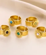 Ontdek de elegante charme van de Marama ring, speciaal ontworpen voor dames die houden van een unieke stijl. Deze prachtige ring is gemaakt van stainless steel en is gold plated, waardoor hij een luxe uitstraling heeft. De ring is voorzien van een zon met een natuurlijke steen, wat elke ring uniek maakt.