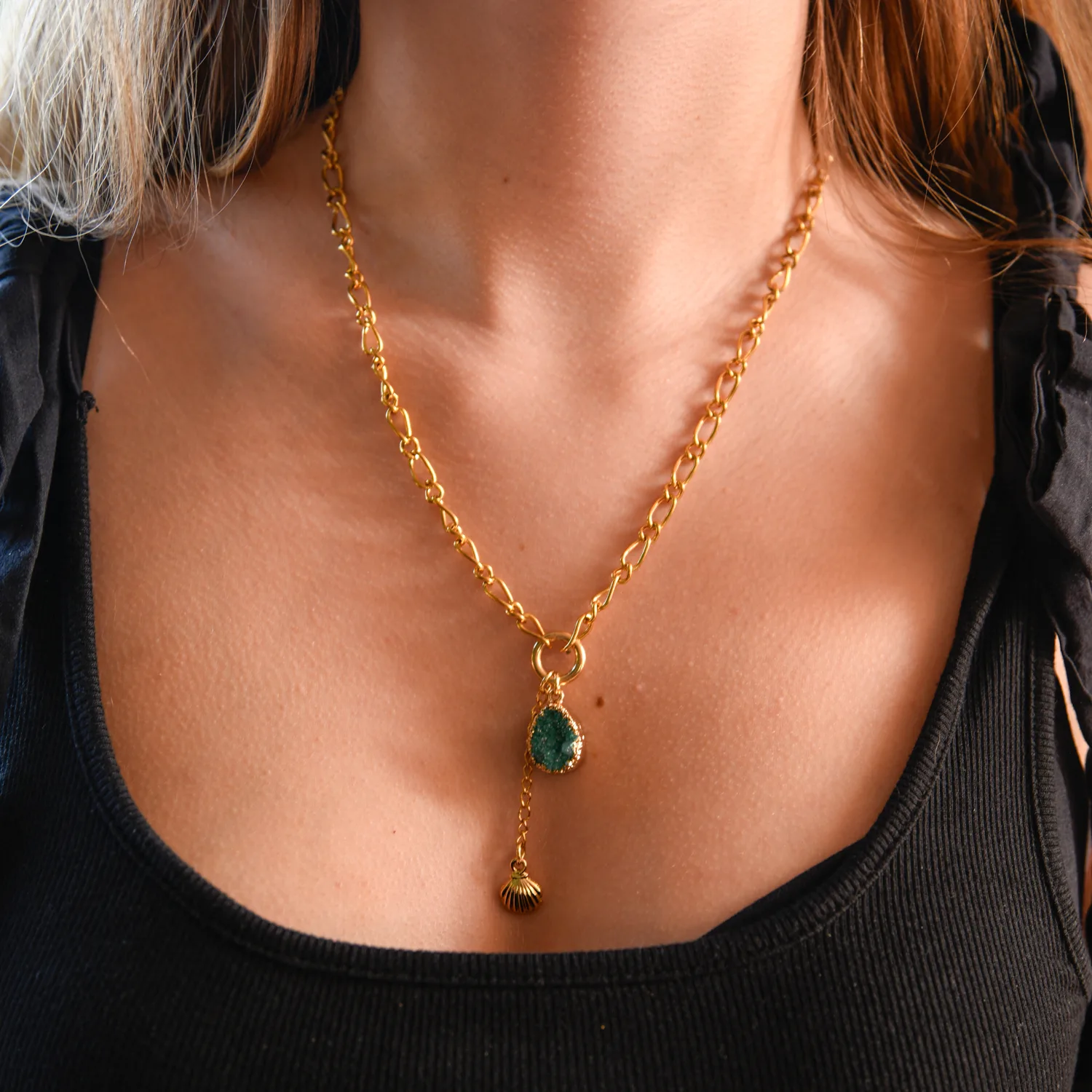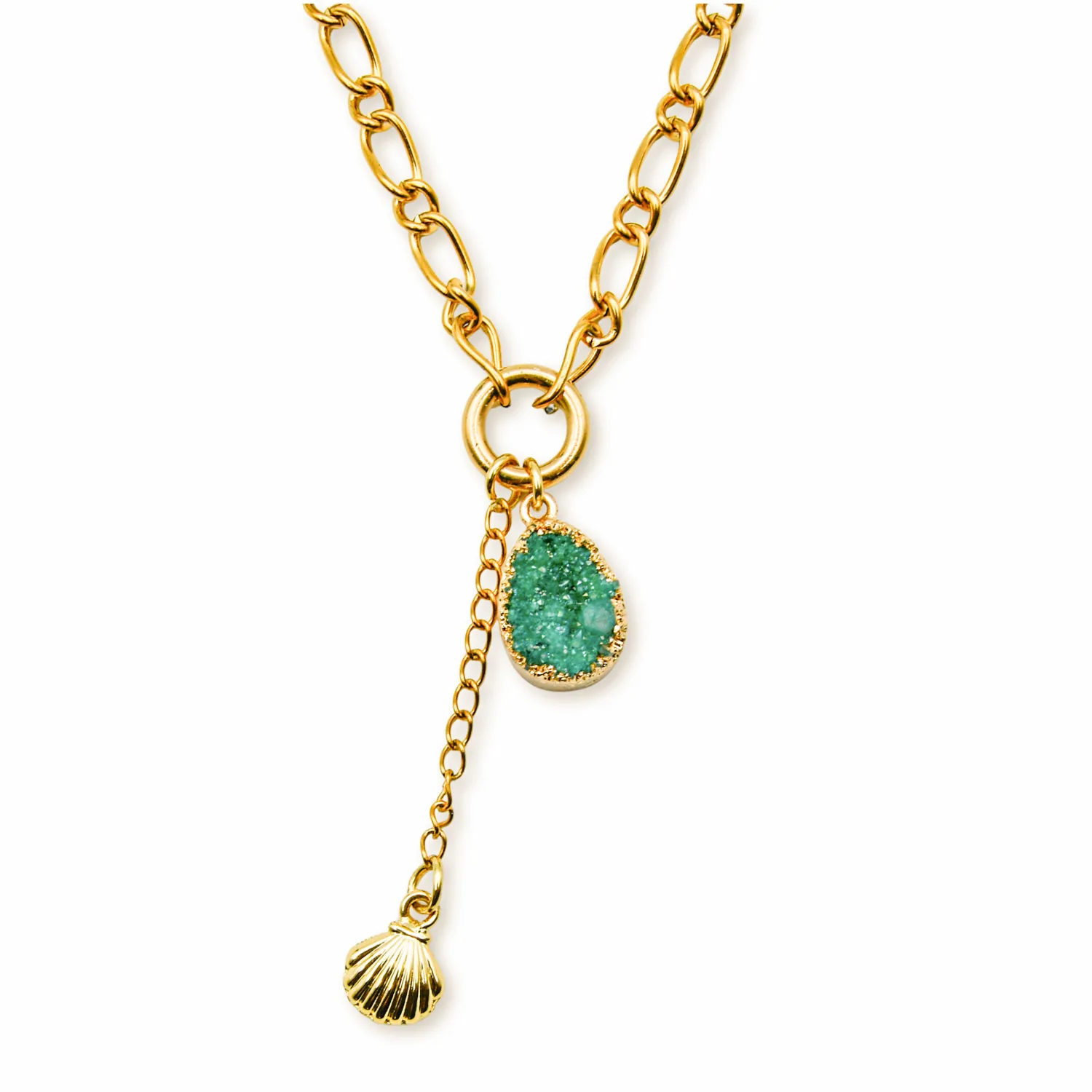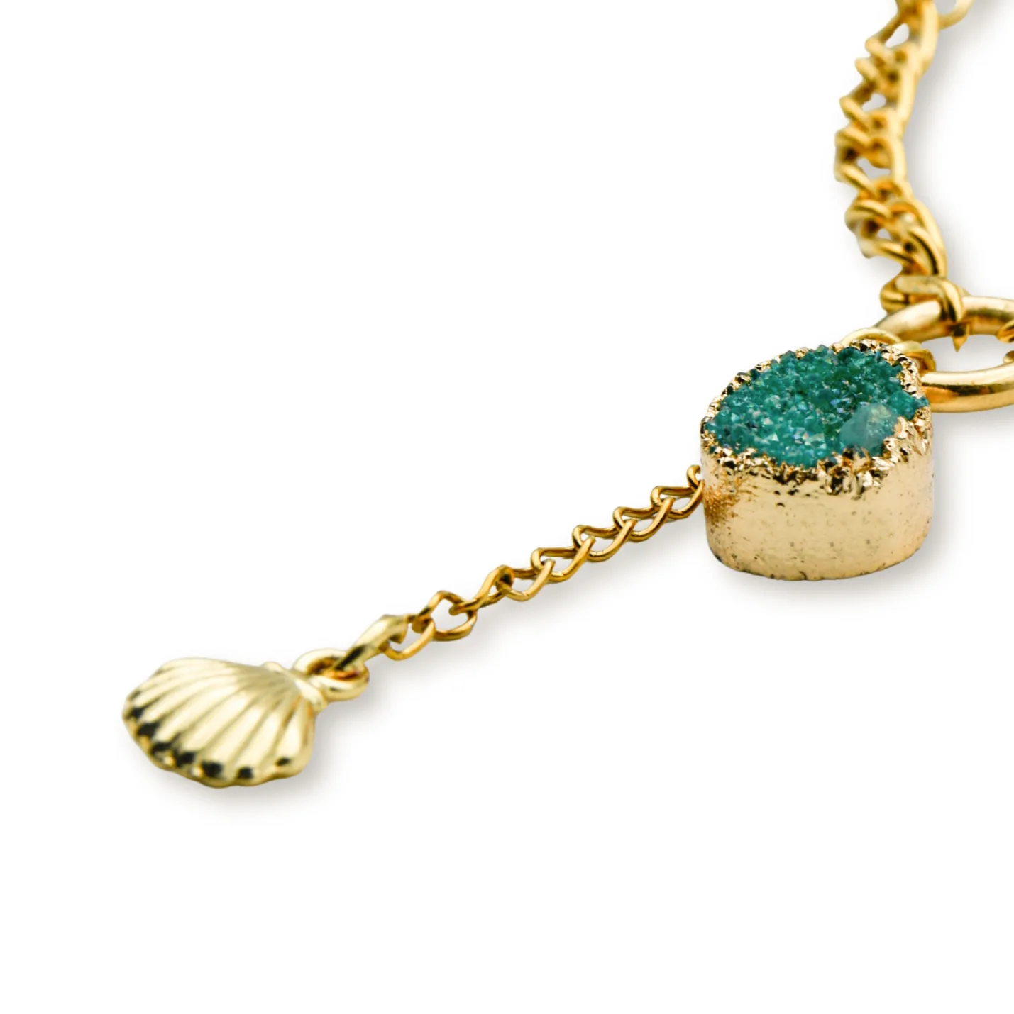 Ketting Goud Druzy Agaat Turquoise – Schelpje