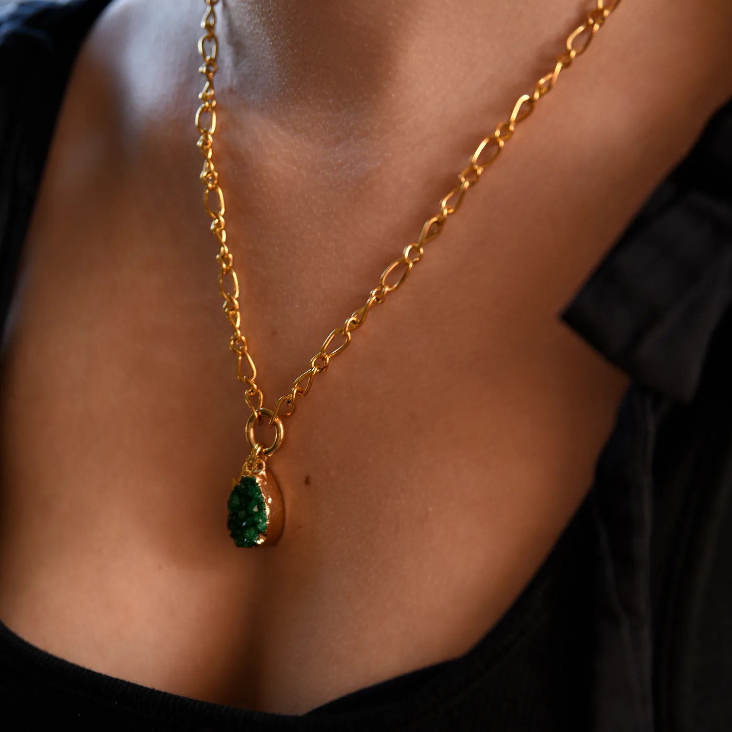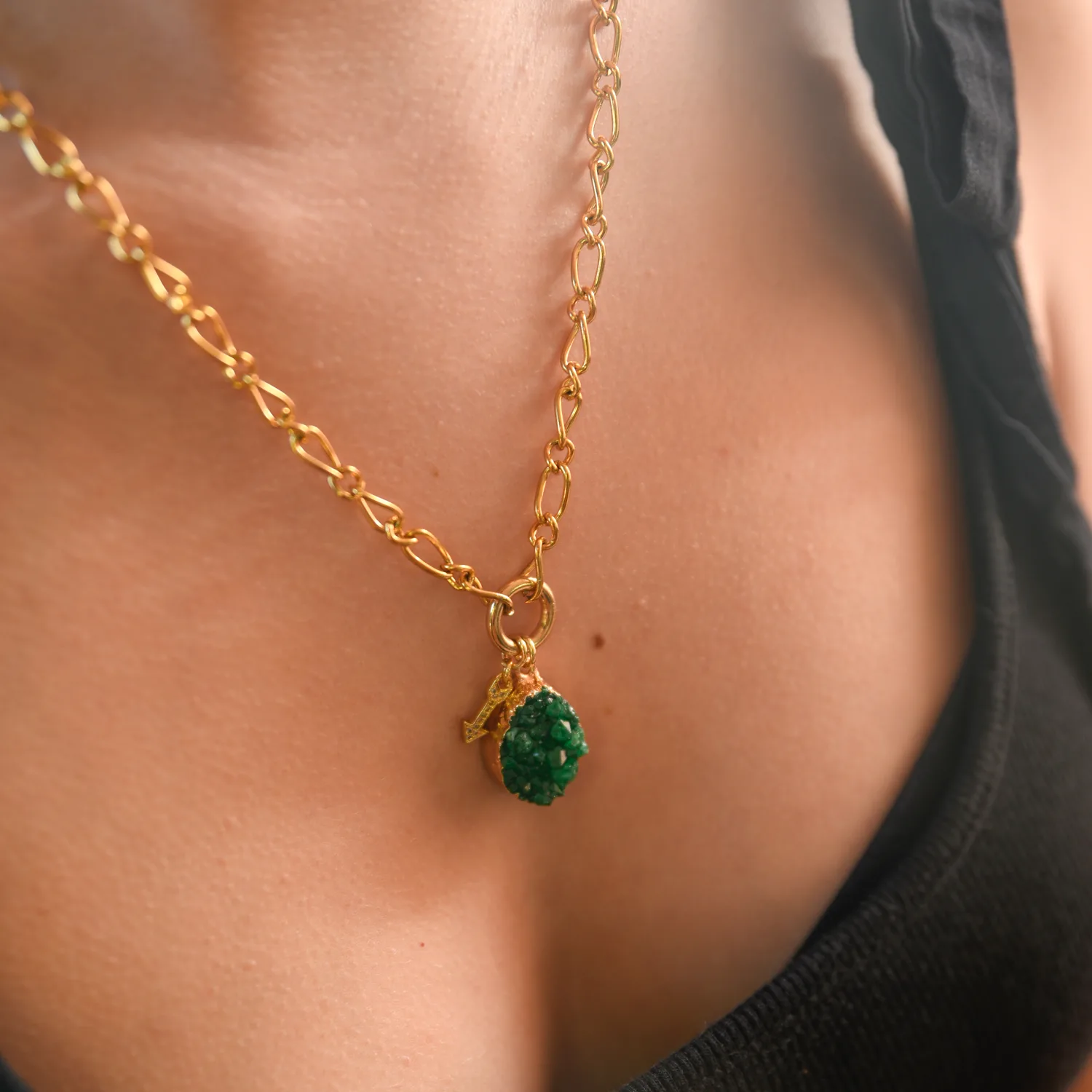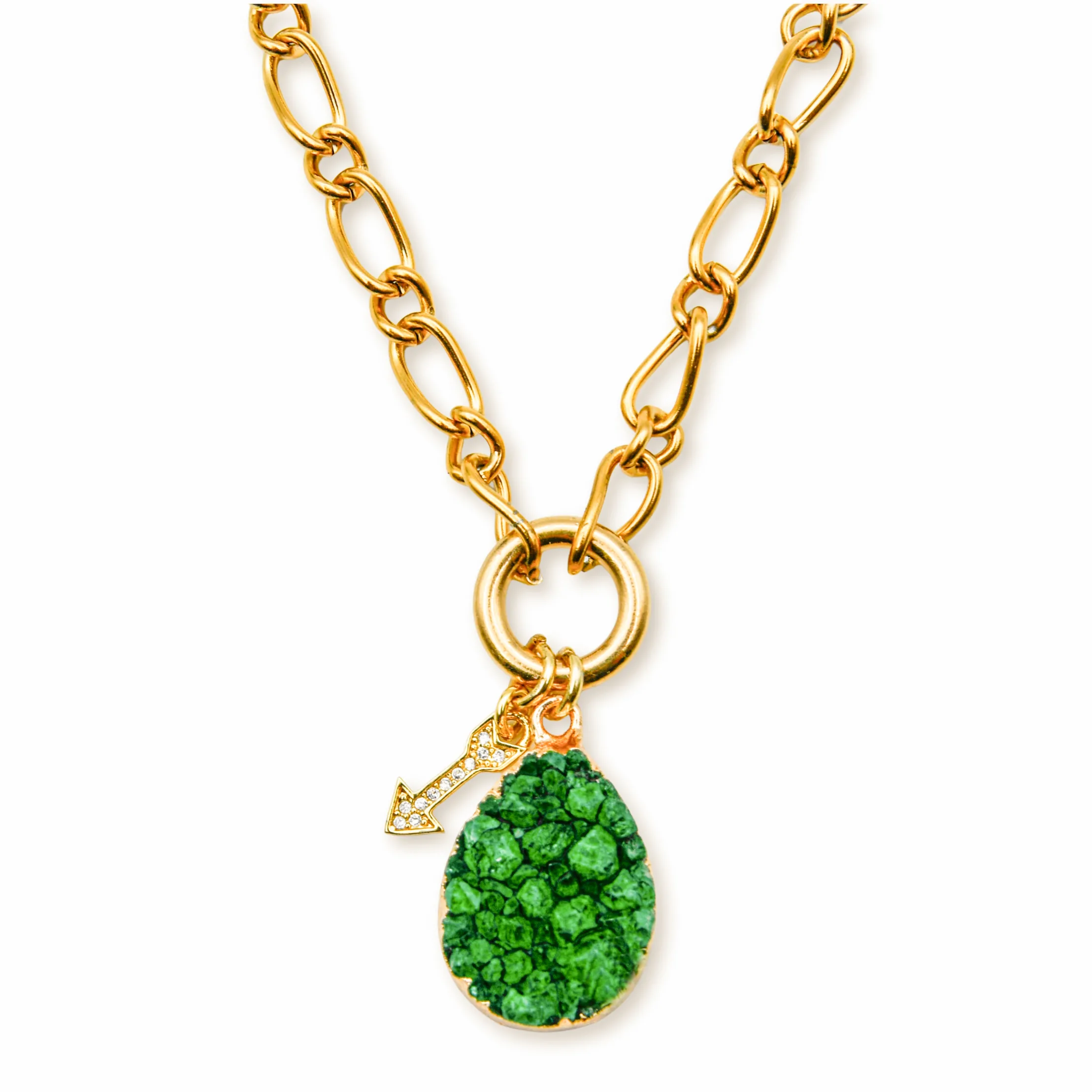 Ketting Goud Druzy Agaat Groen – Pijl