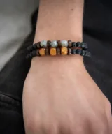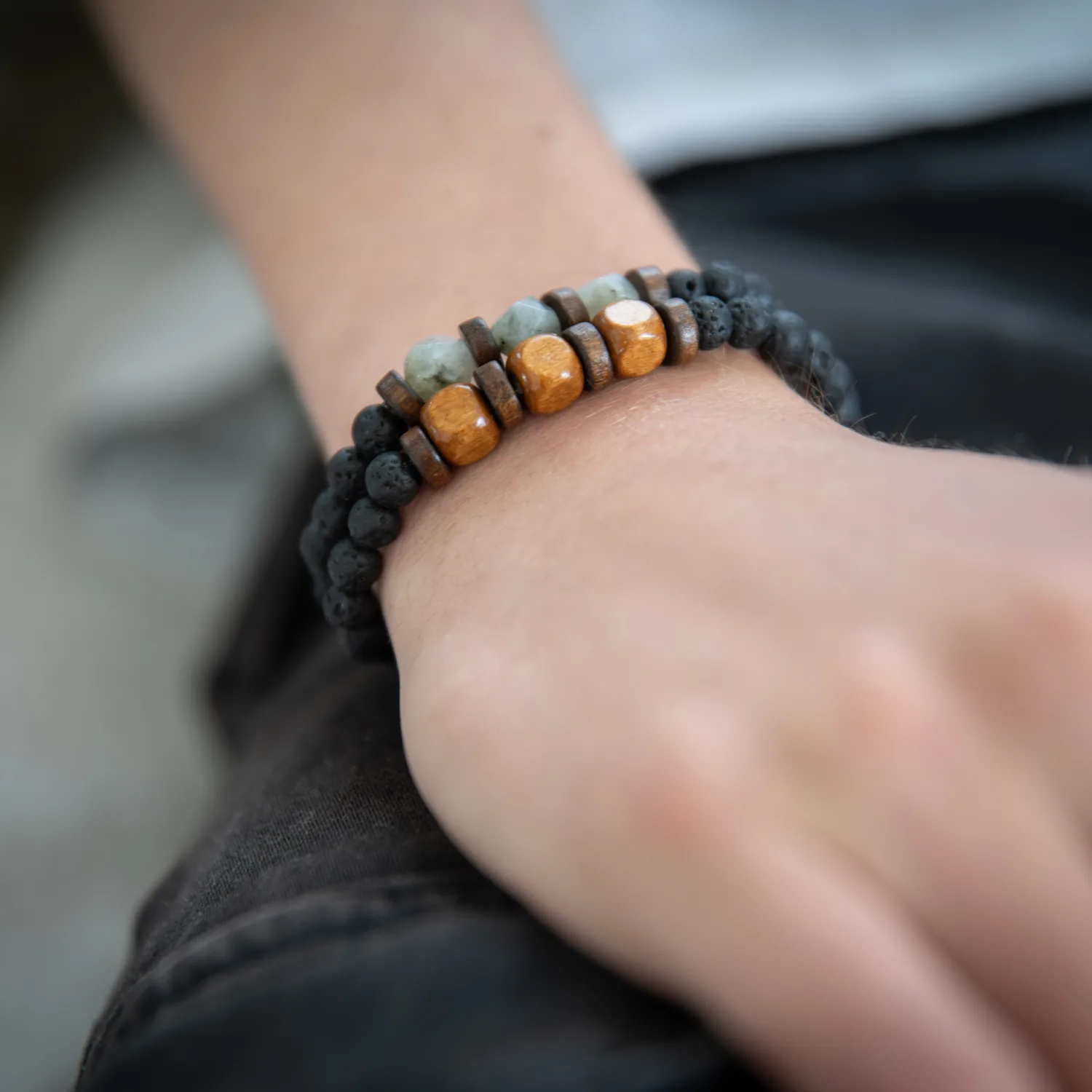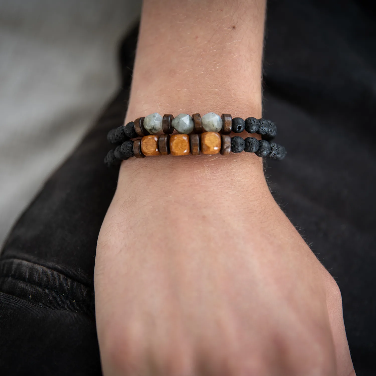 Ontdek de perfecte balans tussen stijl en stoerheid met dit Long Beach Matte armbanden set. Deze set van 2 armbanden is speciaal ontworpen voor heren die op zoek zijn naar een unieke uitstraling. De armbanden zijn gemaakt van hoogwaardig elastisch koord en bevatten maansteen edelsteen, houten kralen en zwarte Lava edelstenen, waardoor ze zowel elegant als robuust zijn. Met de zwarte kleur en naturel tinten passen ze moeiteloos bij elke outfit.