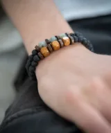 - edelsteen Maansteen en Lavasteen, houten kralen