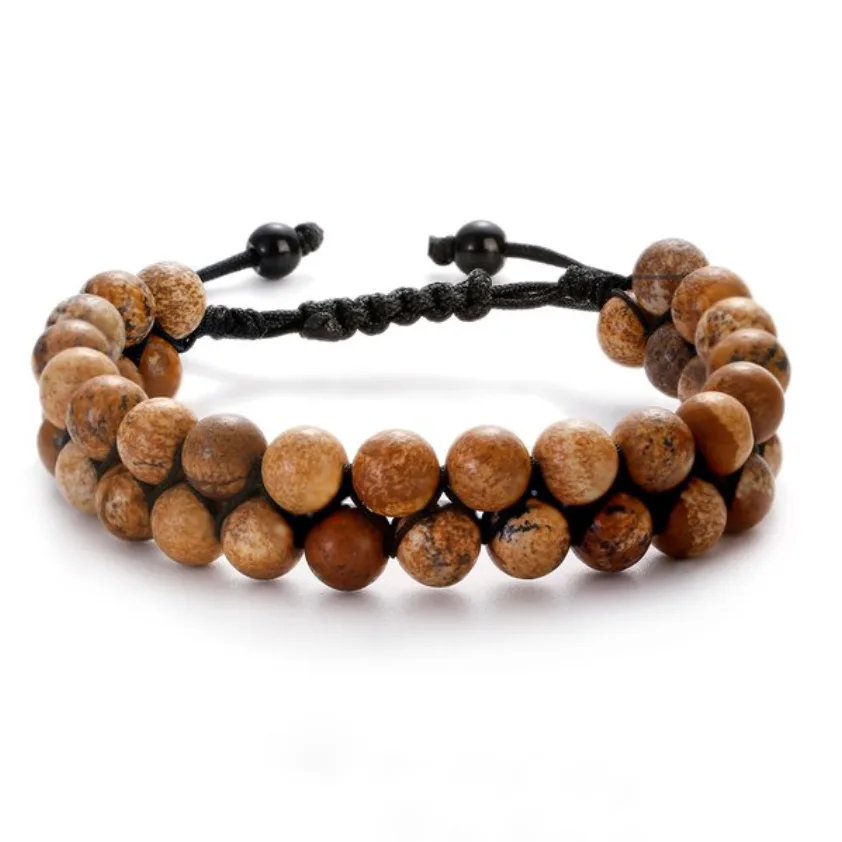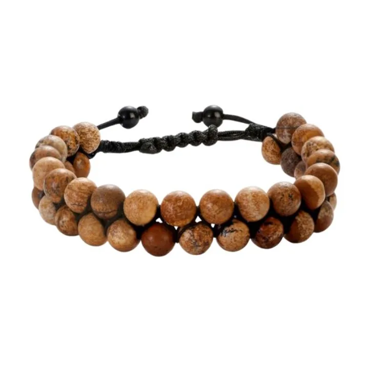 Deze stoere handgemaakte armband van zwart waxcord en bruin gemêleerde Jaspis edelstenen heeft een een verstelbare treksluiting. De armband is geschikt voor mannen en vrouwen. Draag de armband met meerdere armbanden uit deze serie voor een mooi effect, of draag hem subtiel als enkele armband om je pols. Leuk om cadeau te geven. Deze herenarmband wordt geleverd in een luxe geschenkverpakking.