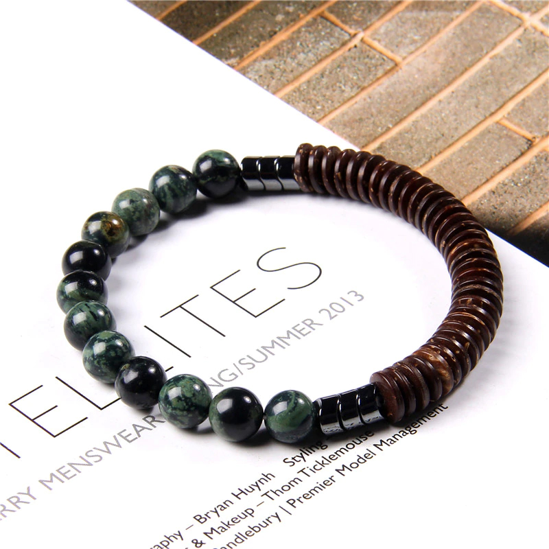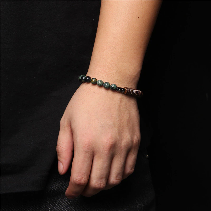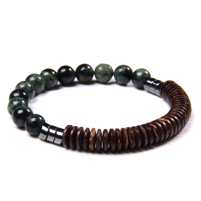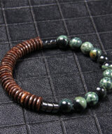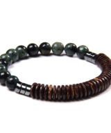 Deze stoere handgemaakte herenarmband Nevada Green beschikt over Jade edelstenen en houten kralen. Draag de elastische armband met meerdere armbanden uit deze serie voor een mooi effect, of draag hem subtiel als enkele armband om je pols. Deze herenarmband is enorm leuk om cadeau te geven. De armband wordt geleverd in een luxe geschenkverpakking.