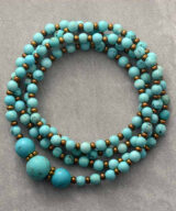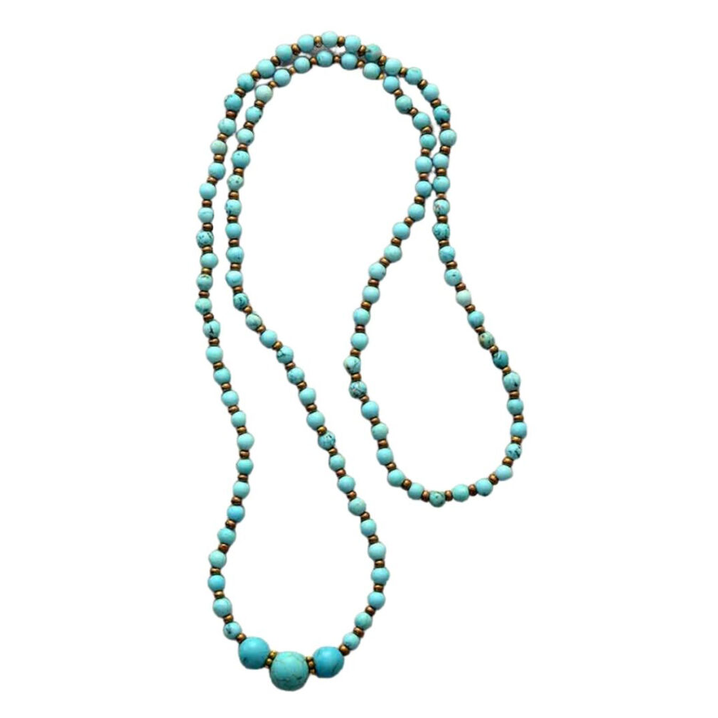 Deze trendy ketting met ronde kralen vervaardigd van de edelsteen Turkoois is een prachtig sieraad, en kan ook als armband worden gedragen. Draag de ketting casual bij bijvoorbeeld een tof jeansoutfit of chique bij een jurk.