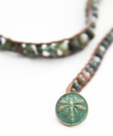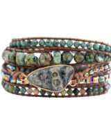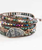 Deze schitterende armband is handgemaakt van bruin vegan cord. De grote steen is een groene Jaspis edelsteen. Deze prachtige wikkelarmband met als hoofdkleur grijs is mooie aanvulling op je outfit met een zomerse look. Geef de armband cadeau aan jouw geliefde in onze luxe geschenkverpakking.