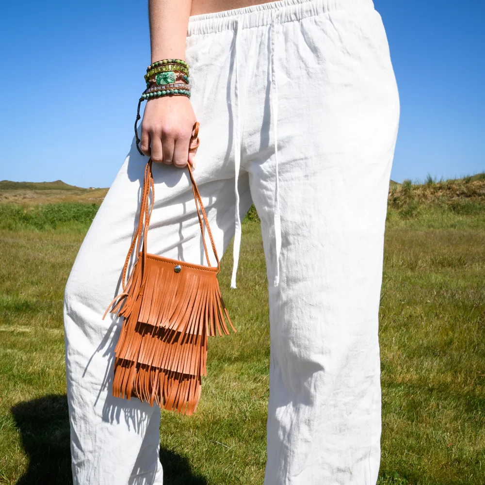 Deze trendy schoudertas Elba Bruin van PU-leer met fringes is een leuke accessoire voor bijvoorbeeld een festival of een avond uit. De eenvoudige tas is is afsluitbaar met een magnetische drukknoop. Vanwege de verstelbare schouderband is deze tas draagbaar als schoudertas en crossbody tas. De compacte tas is ideaal om je telefoon, sleutels, portemonnee en andere kleine artikelen bij je te dragen.