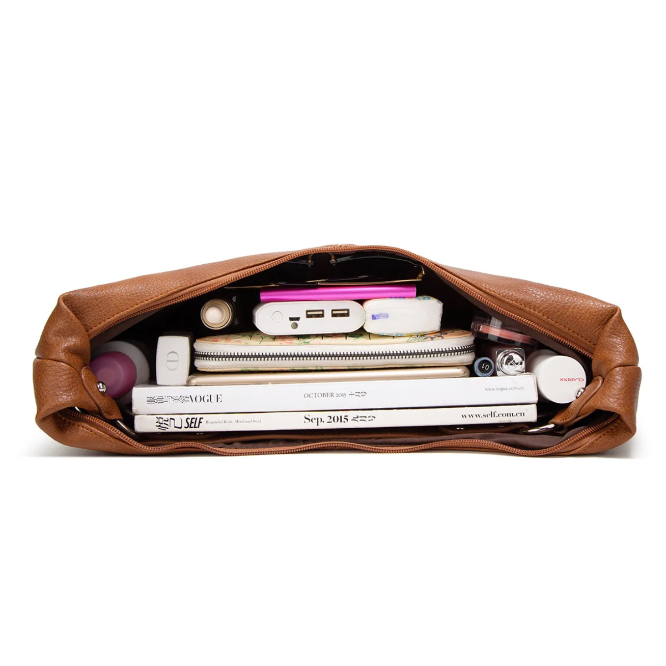 De tas in bruin van pu-leer heeft een ritssluiting en 2 zijvakken, waarin je je sleutels, telefoon en andere kleine items kan opbergen. Aan de binnenkant beschikt deze schoudertas over 1 steekvak en een 1 extra vak met ritssluiting.
