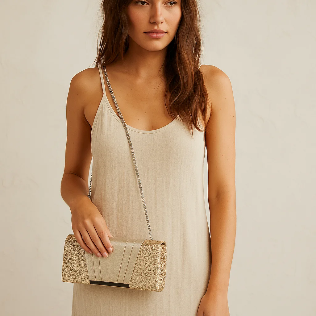 Ben je op zoek naar de perfecte accessoire om je feestoutfit compleet te maken? De schoudertas Maxime Goud is precies wat je nodig hebt. Met de mooie glitters en glamoureuze gouden kleur is deze clutch een echte eyecatcher.