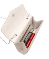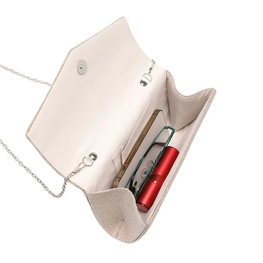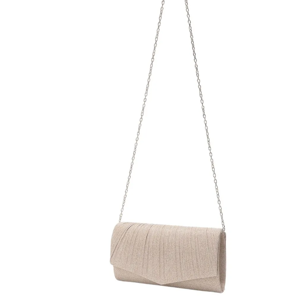 Deze schoudertas is perfect voor een avondje uit, met haar glinsterende details en geplooide design. De magnetische sluiting zorgt ervoor dat je spullen veilig blijven terwijl je de dansvloer onveilig maakt. En als je even geen zin hebt om te sjouwen, kan je de afneembare schouderketting gebruiken en van Sophie een handige clutch tas maken. Een must-have accessoire voor elke dame die op zoek is naar stijl en functionaliteit.