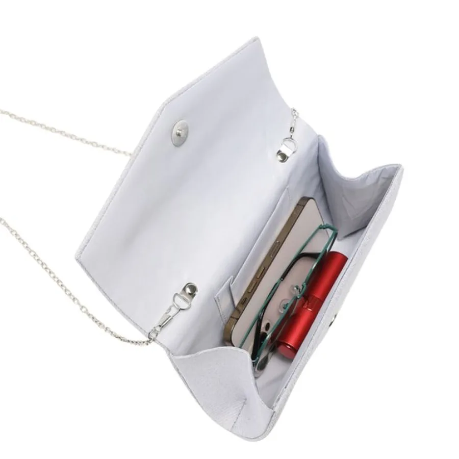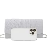Ladies, meet Sophie, the ultimate party companion! Deze schoudertas is perfect voor een avondje uit, met haar glinsterende details en geplooide design. De magnetische sluiting zorgt ervoor dat je spullen veilig blijven terwijl je de dansvloer onveilig maakt. En als je even geen zin hebt om te sjouwen, kan je de afneembare schouderketting gebruiken en van Sophie een handige clutch tas maken. Een must-have accessoire voor elke dame die op zoek is naar stijl en functionaliteit. Oh, en natuurlijk is ze zilver – de kleur die altijd in de mode is!