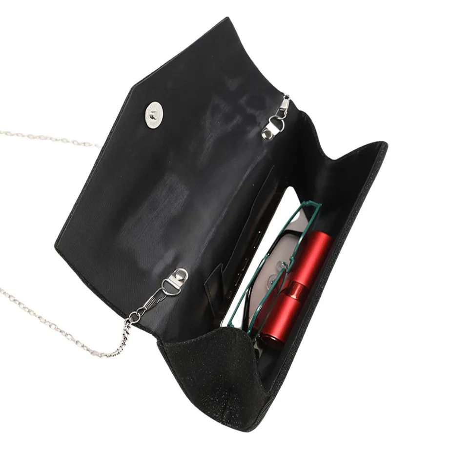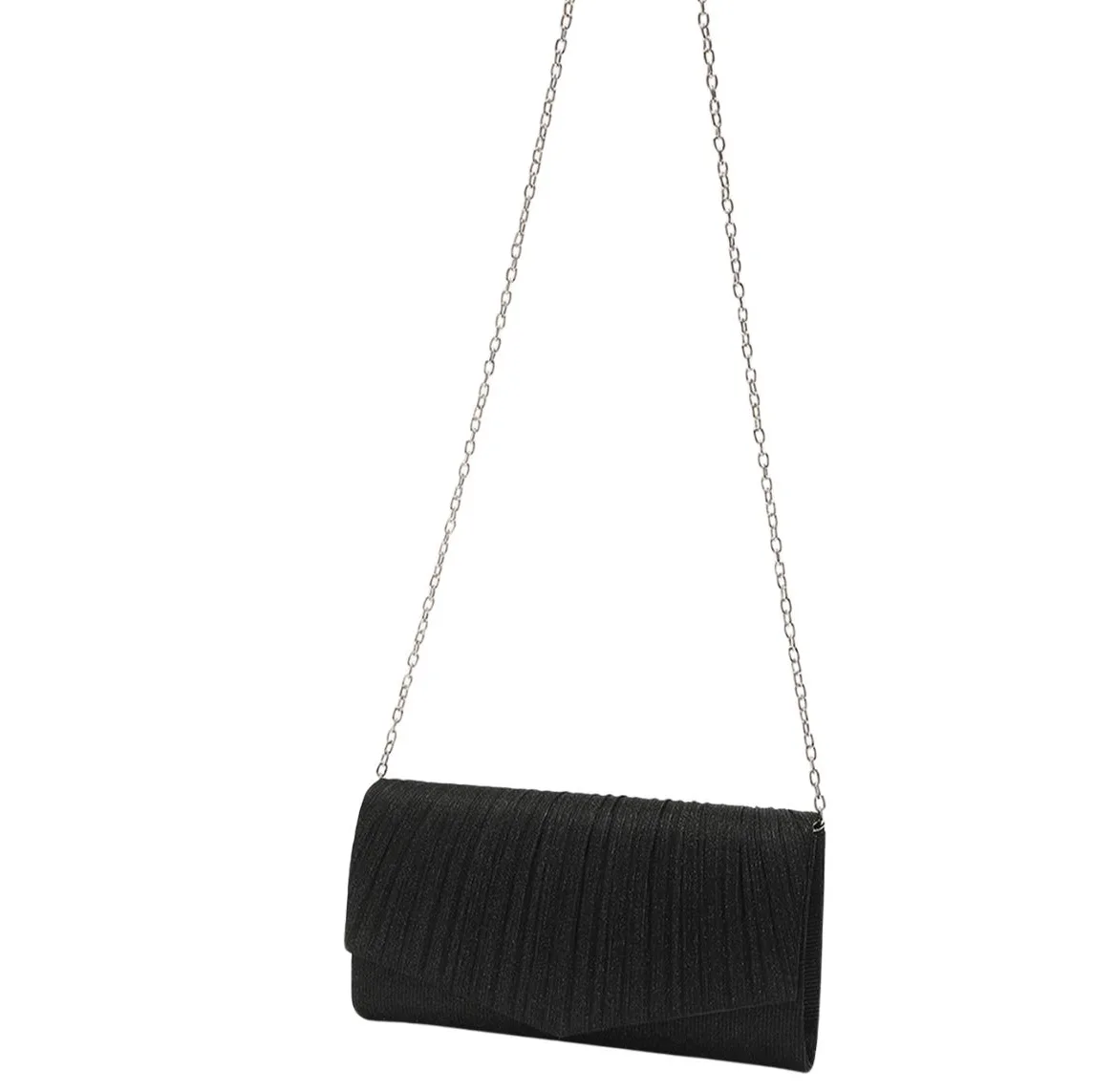 Ladies, meet Sophie, the ultimate party companion! Deze schoudertas is perfect voor een avondje uit, met haar glinsterende details en geplooide design. De magnetische sluiting zorgt ervoor dat je spullen veilig blijven terwijl je de dansvloer onveilig maakt. En als je even geen zin hebt om te sjouwen, kan je de afneembare schouderketting gebruiken en van Sophie een handige clutch tas maken. Een must-have accessoire voor elke dame die op zoek is naar stijl en functionaliteit. Oh, en natuurlijk is ze zwart – de kleur die altijd in de mode is!