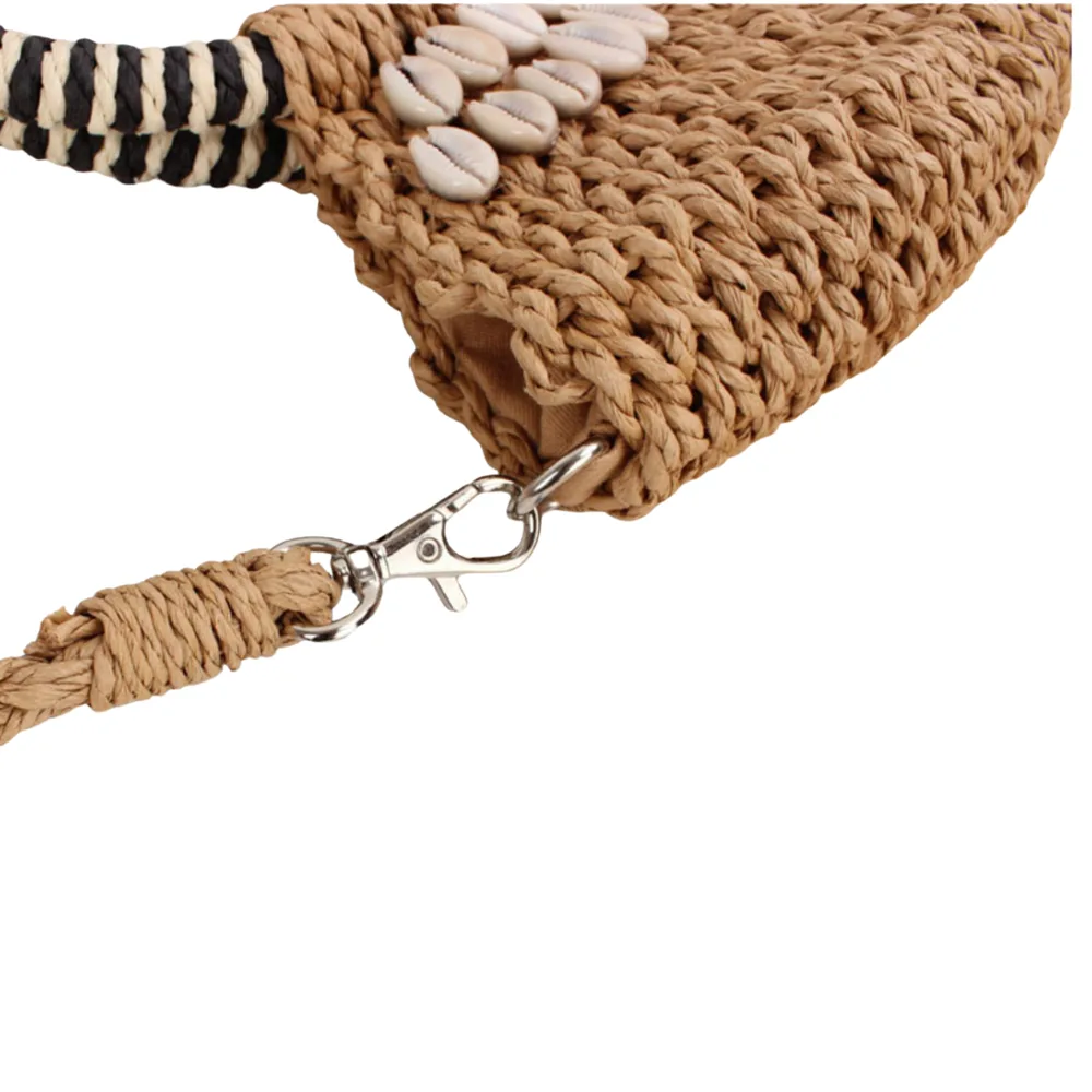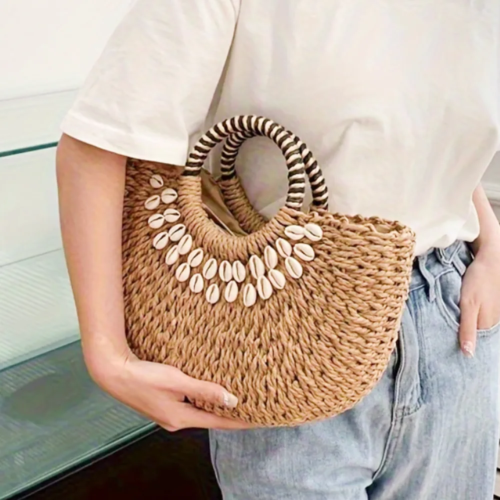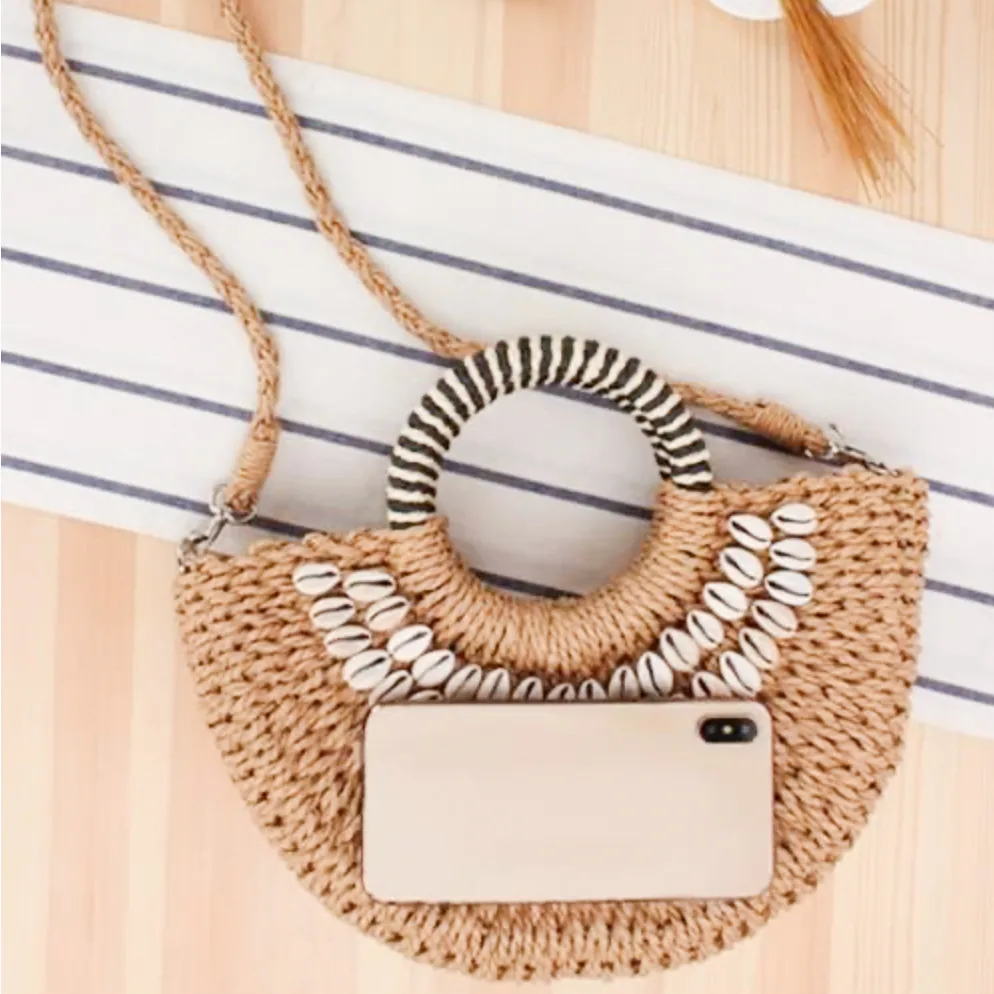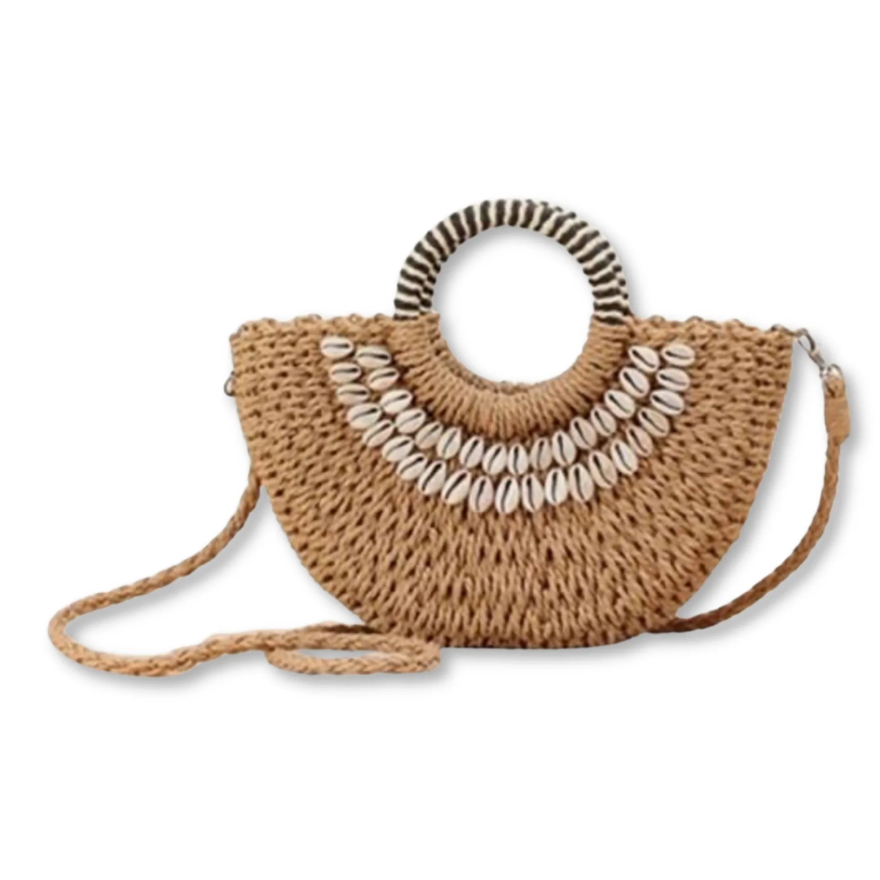 Ben je klaar om je zomerse look compleet te maken? De Schoudertas Lea is precies wat je nodig hebt. Deze prachtige damestas is handgemaakt van gevlochten zeegras en heeft een uniek schelp detail dat perfect past bij de ibiza stijl. Of je nu op vakantie gaat of gewoon een dagje uit, deze tas is de ideale metgezel.