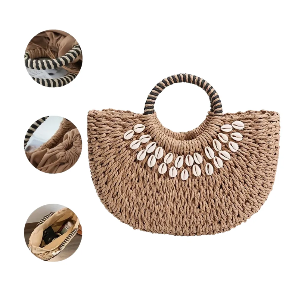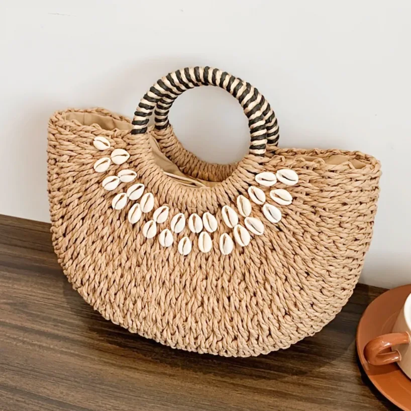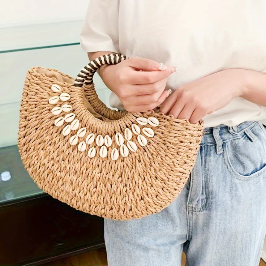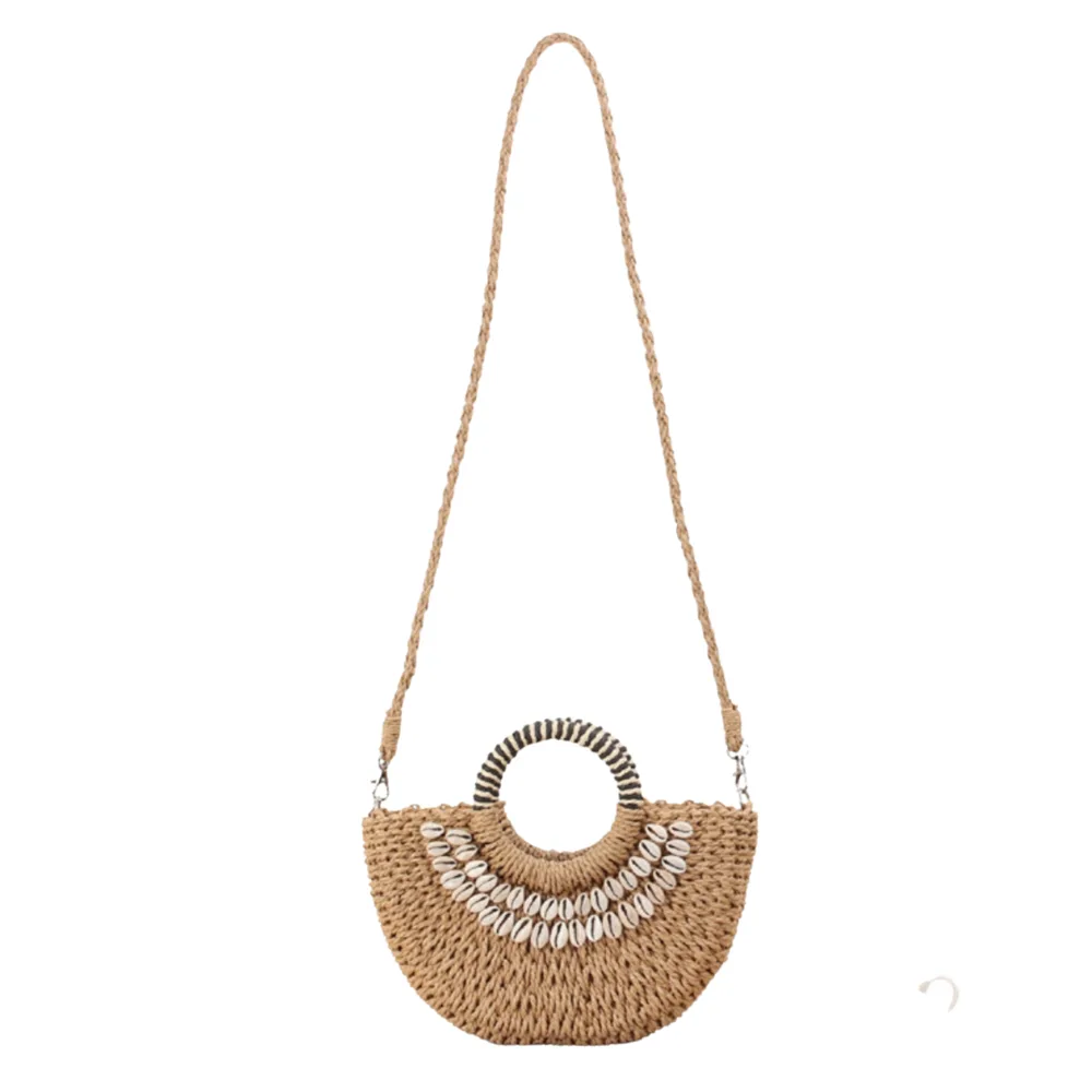 Ben je klaar om je zomerse look compleet te maken? De Schoudertas Lea is precies wat je nodig hebt. Deze prachtige damestas is handgemaakt van gevlochten zeegras en heeft een uniek schelp detail dat perfect past bij de ibiza stijl. Of je nu op vakantie gaat of gewoon een dagje uit, deze tas is de ideale metgezel.