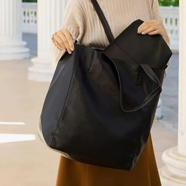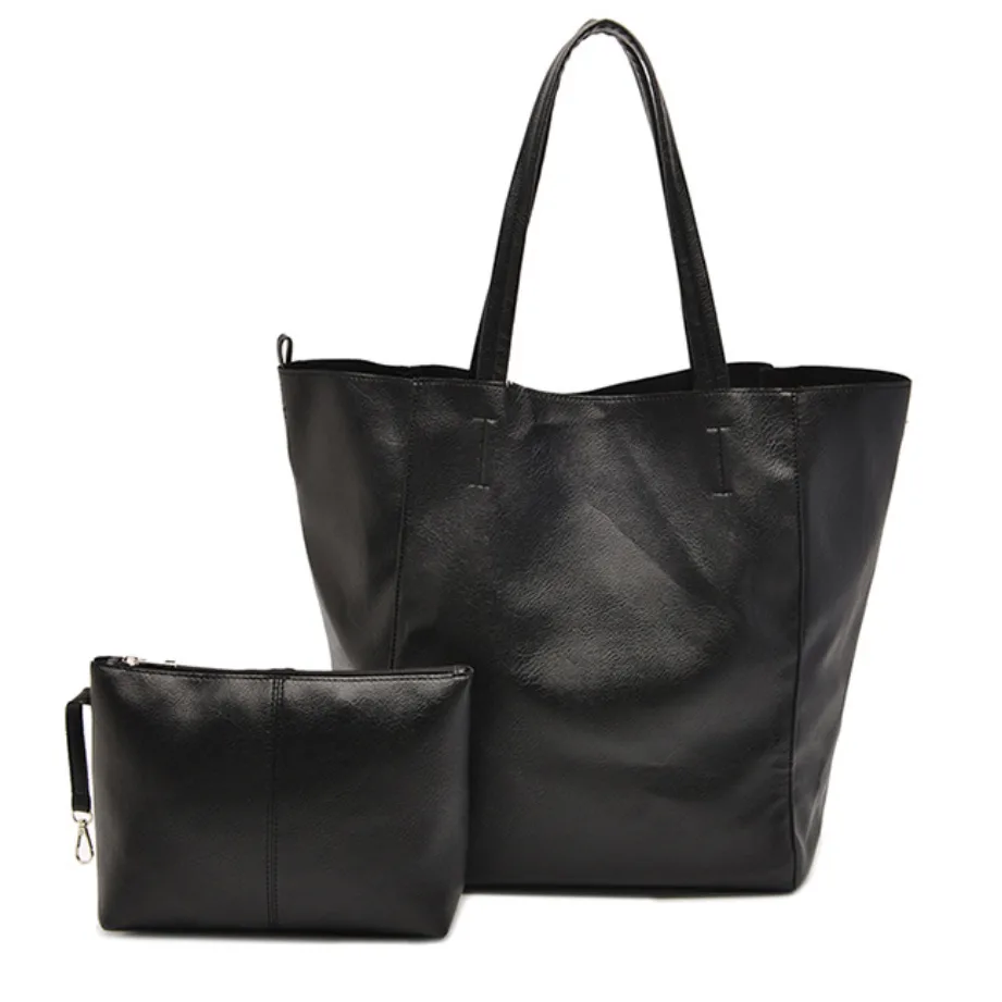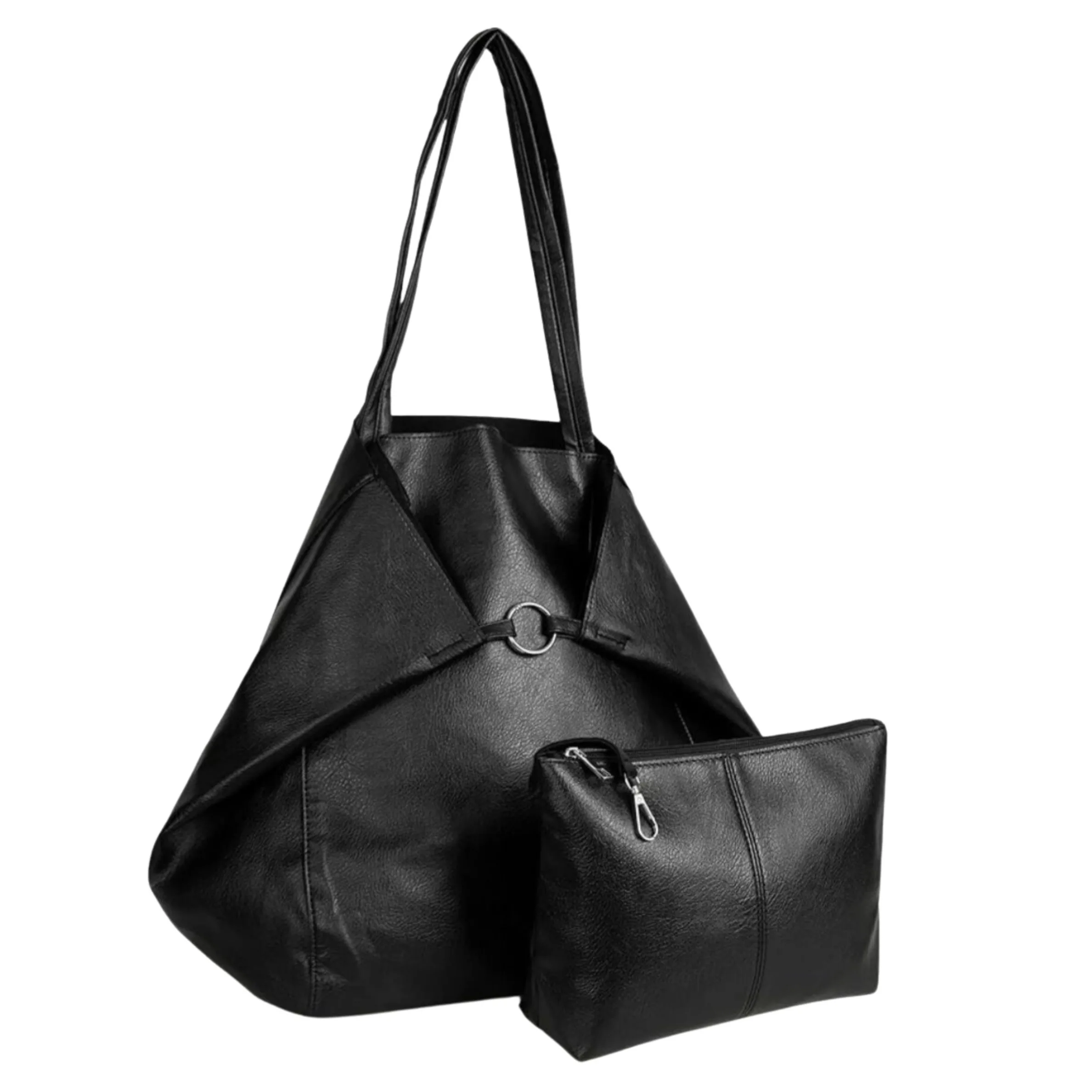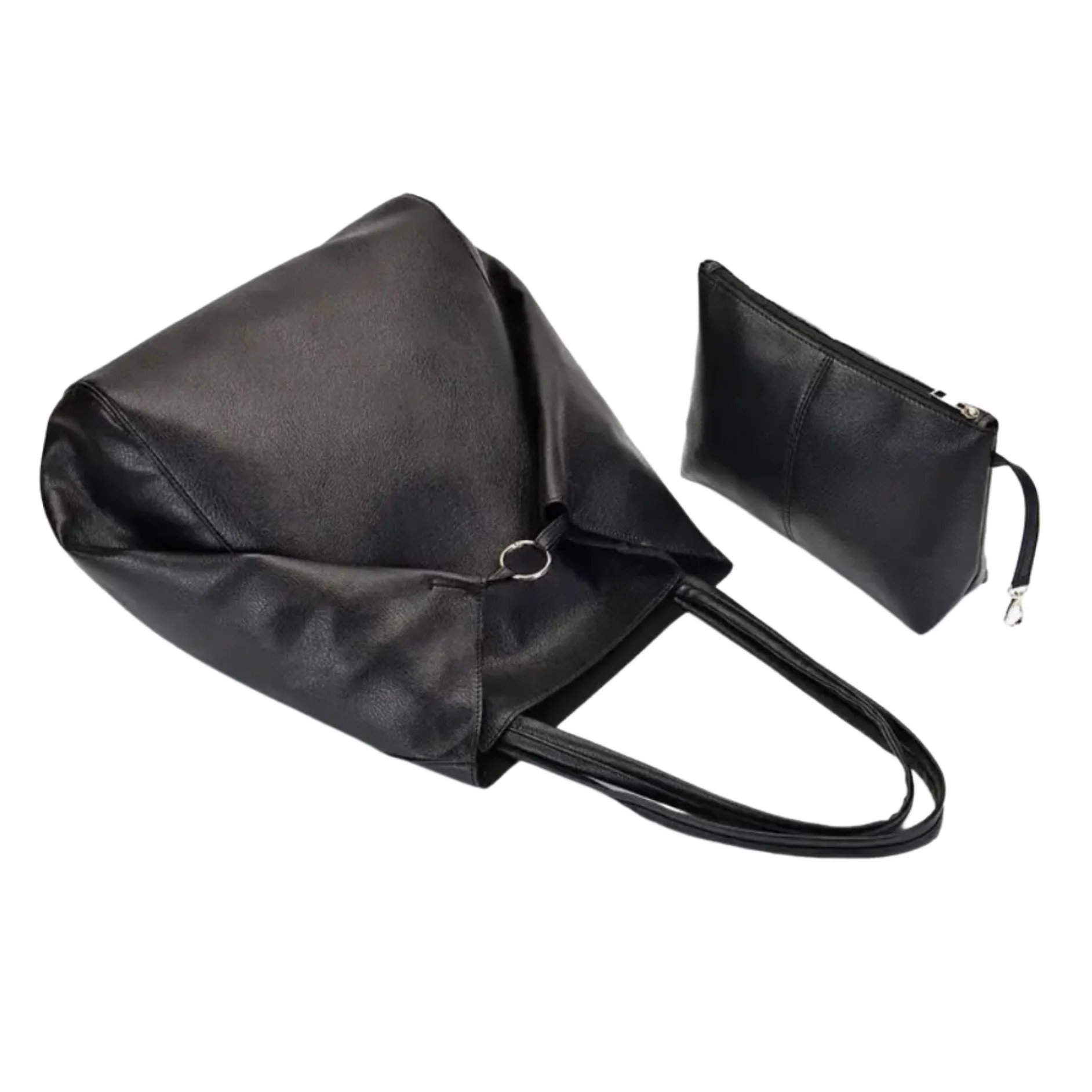 Met tassenset Elin zwart kun je alle kanten op! Deze set van 2 tassen bestaat uit een trendy grote schoudertas en een extra opbergtasje voor al je belangrijke essentials, de perfecte aanvulling op je accessoirecollectie. Gemaakt van hoogwaardig vegan PU-leer, straalt de Elin tassenset stijl en elegantie uit.