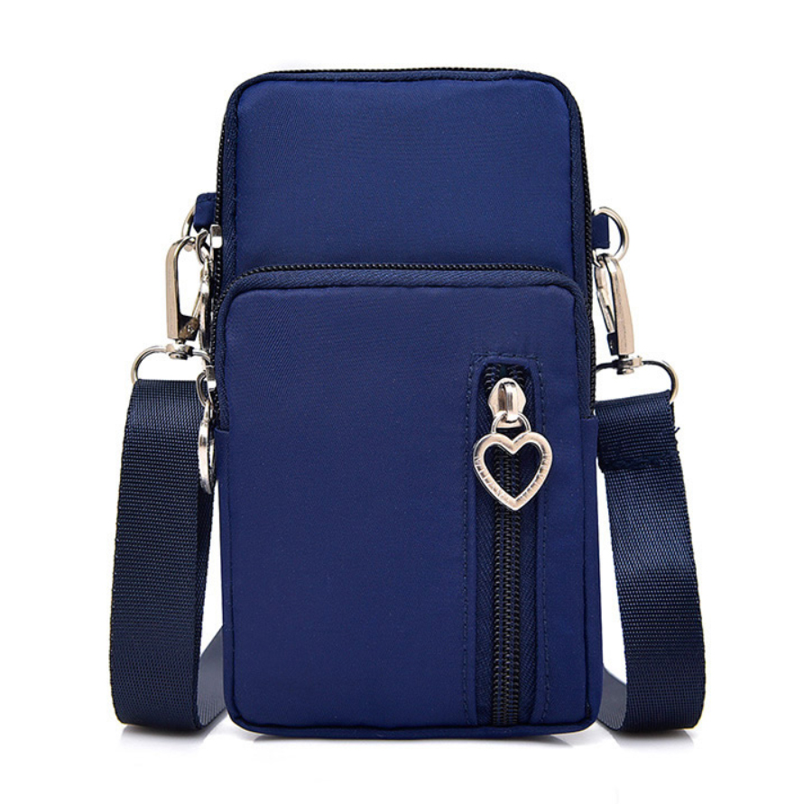 Deze compacte telefoontas blauw is ideaal om je telefoon, sleutels en pasjes bij je te dragen. De lichtgewicht, waterafstotende tas is ontworpen om je telefoon veilig op te bergen terwijl je onderweg bent. Met zijn compacte formaat, ritssluiting en afneembare schouderriem draag je de tas gemakkelijk met al je sleutels en pasjes. De telefoontas is voorzien van een extra elastische band, waardoor je de tas om je arm kunt spannen, voor bijvoorbeeld tijdens het sporten.