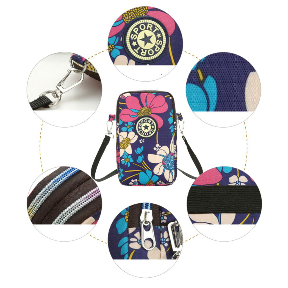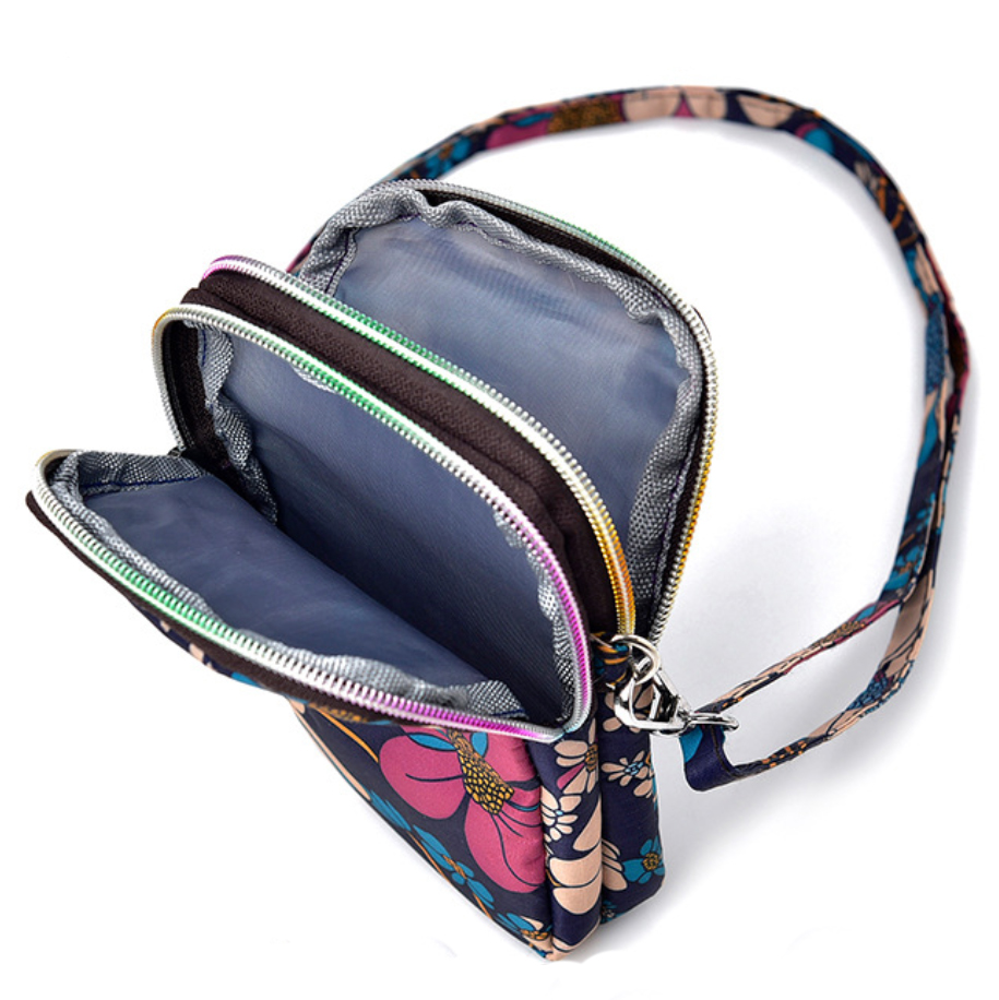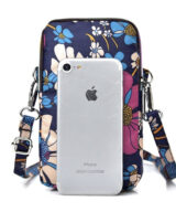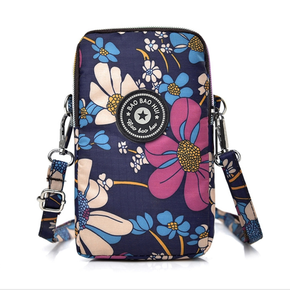 Deze compacte telefoontas met een print van bloemen is ideaal om je telefoon, sleutels en pasjes bij je te dragen. De lichtgewicht, waterafstotende tas is ontworpen om je telefoon veilig op te bergen terwijl je onderweg bent. Met zijn compacte formaat, ritssluiting en afneembare schouderriem draag je de tas gemakkelijk met bijvoorbeeld je sleutels en pasjes. De telefoontas is voorzien van een extra elastische band aan de achterzijde, waardoor je de tas om je arm kunt spannen, voor bijvoorbeeld tijdens het sporten.