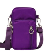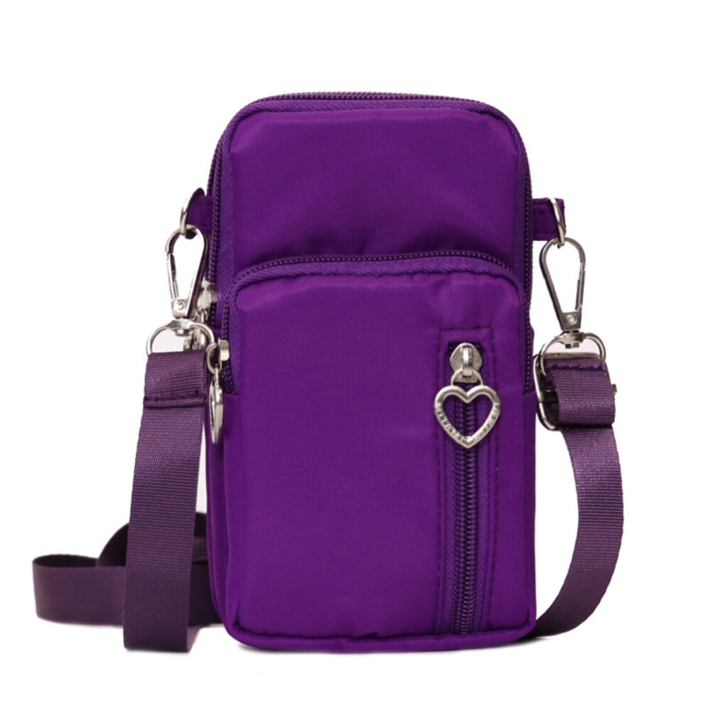 Deze compacte telefoontas paars is ideaal om je telefoon, sleutels en pasjes bij je te dragen. De lichtgewicht, waterafstotende tas is ontworpen om je telefoon veilig op te bergen terwijl je onderweg bent. Met zijn compacte formaat, ritssluiting en afneembare schouderriem draag je de tas gemakkelijk met al je sleutels en pasjes. De telefoontas is voorzien van een extra elastische band, waardoor je de tas om je arm kunt spannen, voor bijvoorbeeld tijdens het sporten.