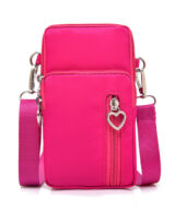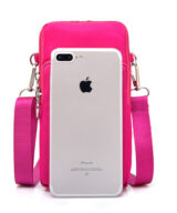 Deze compacte telefoontas roze is ideaal om je telefoon, sleutels en pasjes bij je te dragen. De lichtgewicht, waterafstotende tas is ontworpen om je telefoon veilig op te bergen terwijl je onderweg bent. Met zijn compacte formaat, ritssluiting en afneembare schouderriem draag je de tas gemakkelijk met al je sleutels en pasjes. De telefoontas is voorzien van een extra elastische band, waardoor je de tas om je arm kunt spannen, voor bijvoorbeeld tijdens het sporten.