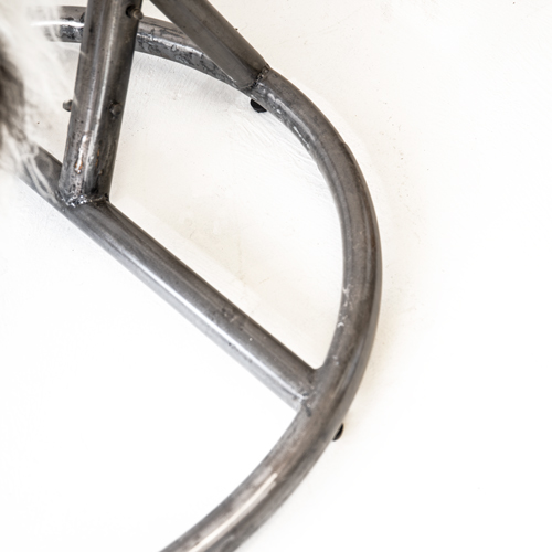 Deze hangstoel standaard van metaal heeft een licht gemêleerde look en een industriële uitstraling.