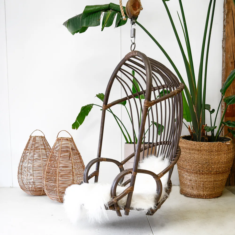 Onze hangstoelen worden vervaardigd van rotan of metaal met coating en zijn handgemaakt in Indonesië.