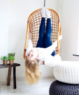 - De hangstoel wordt geleverd met een metalen ketting, een veer en een karabijnhaak. Plafondhaak niet inbegrepen.