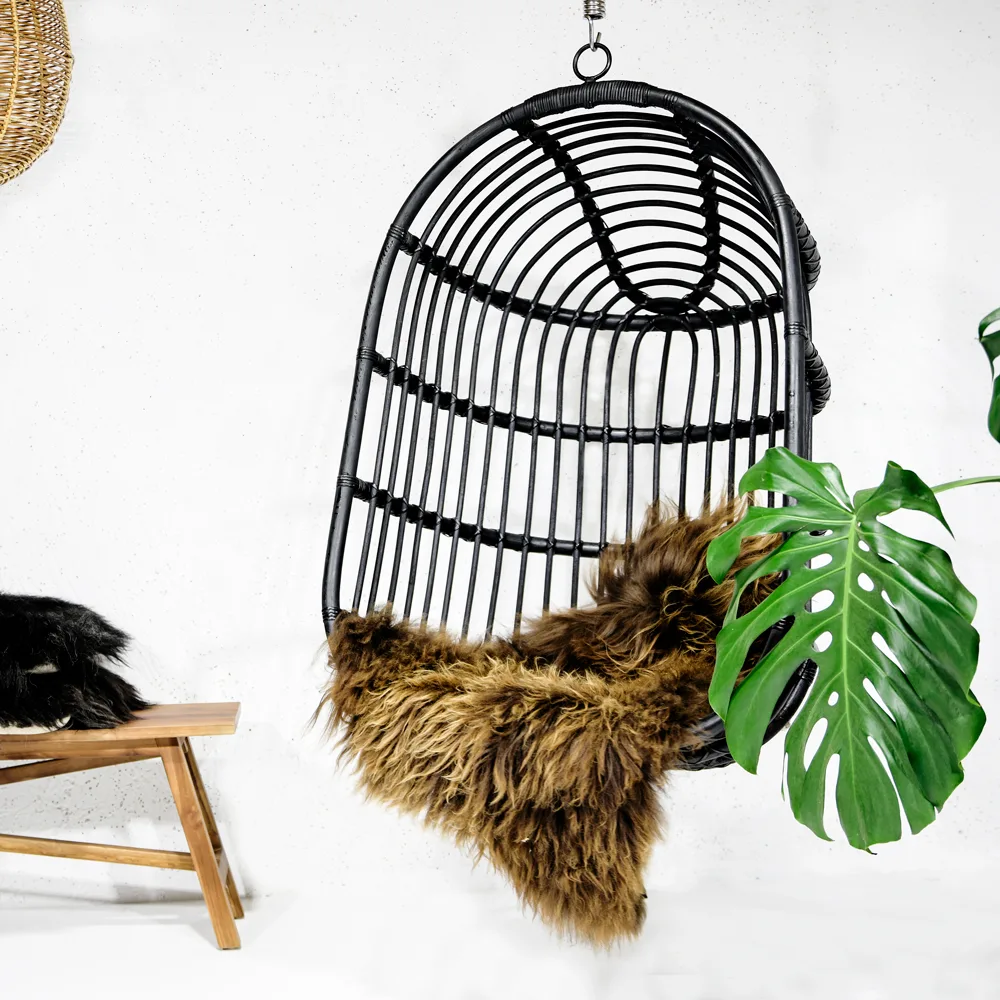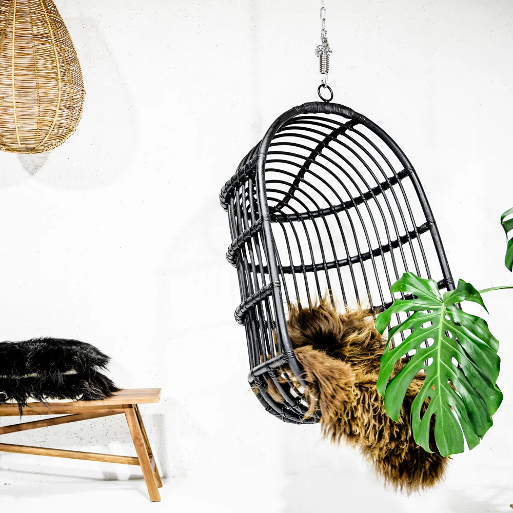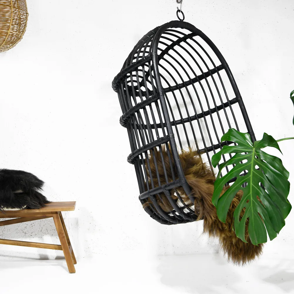Onze hangstoelen worden vervaardigd van rotan met coating en zijn handgemaakt in Indonesië.