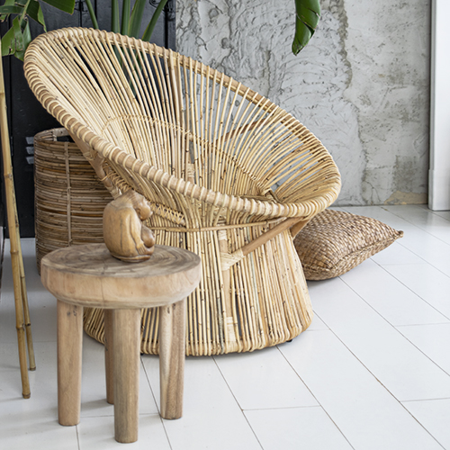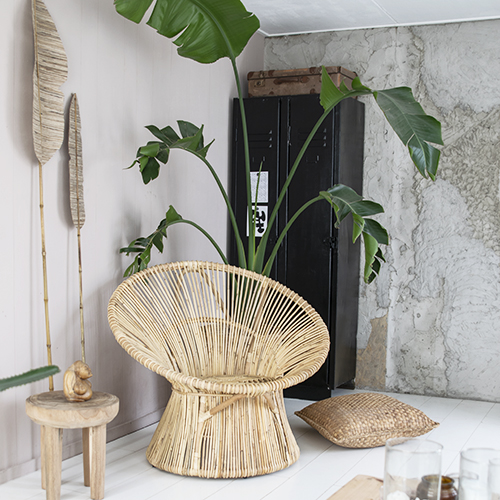 Onze loungestoel is handgemaakt van rotan. Rotan is een natuurproduct en is daarom onderhevig aan weersomstandigheden. Wij raden je daarom aan de stoel binnen te gebruiken. Je mag de stoel wel buiten plaatsen, maar houd er dan rekening mee dat je hem ’s avonds weer binnen zet. Op die manier zul je langer plezier hebben van je loungestoel!