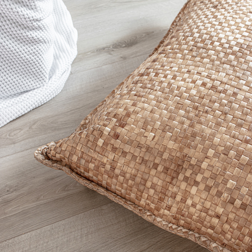 Dit handgemaakte vloerkussen is gemaakt van gewoven en gedroogde waterhyacinth en heeft een natuurlijke uitstraling.