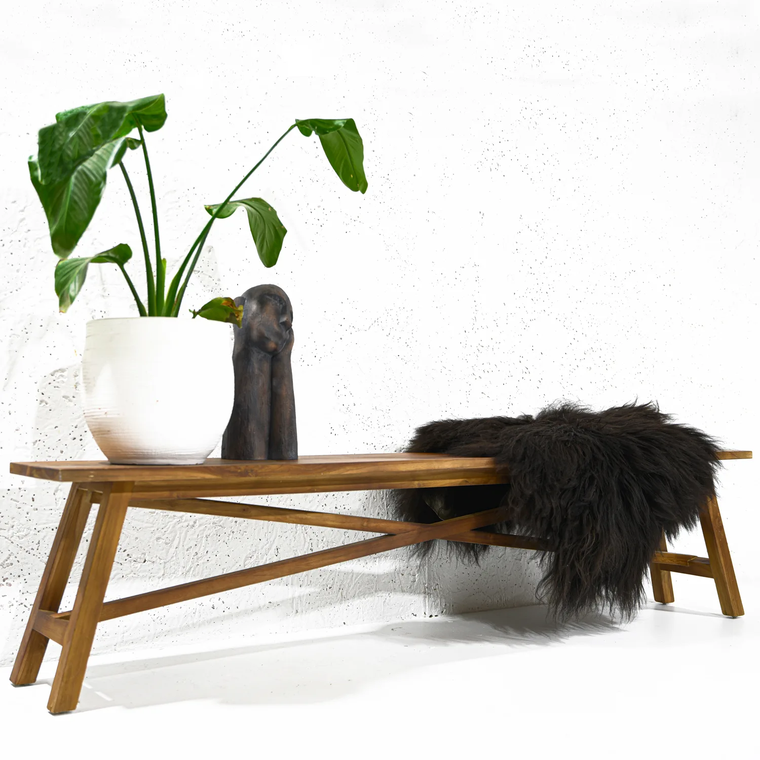 Niet alleen is Bank Boris visueel aantrekkelijk, maar het is ook nog eens gemaakt van duurzaam mango hout, waardoor het een milieuvriendelijke keuze is. Door te kiezen voor natuurlijke materialen draag je bij aan een duurzamere levensstijl, terwijl je tegelijkertijd geniet van de prachtige esthetiek van deze bank.