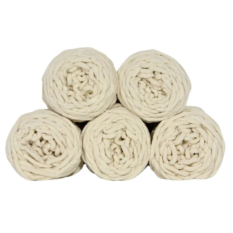 Ontdek het plezier van creatief handwerk met deze Set van 5 Bollen Chunky Wol in de kleur Crème! Dit luxueuze chunky garen is perfect voor al je haak- en breiprojecten. Met deze chunky wol krijg je een mooie textuur en een knuffelbaar resultaat. De dikke draden geven je creaties een mooi eindresultaat en maken ze extra pluizig en aaibaar.