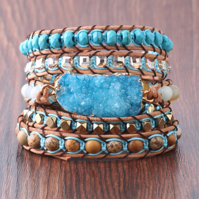 Armband Edelsteen Labradoriet Bruin Waxcord