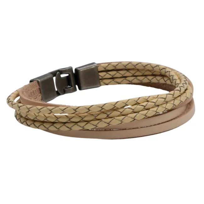 Armband Lichtbruin Leer Bruingrijze Jaspis Edelstenen